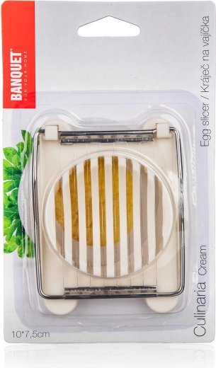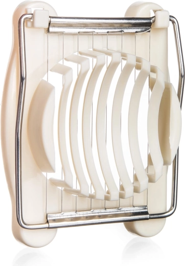 Ce tranche-œufs crème élégant allie design pratique et utilisation rapide. La base stable avec berceau moulé maintient l’œuf fermement, tandis que les fils en inox rapprochés garantissent des coupes nettes et régulières sans écraser. Idéal pour les œufs dans les salades, sandwiches ou pour un service décoratif.