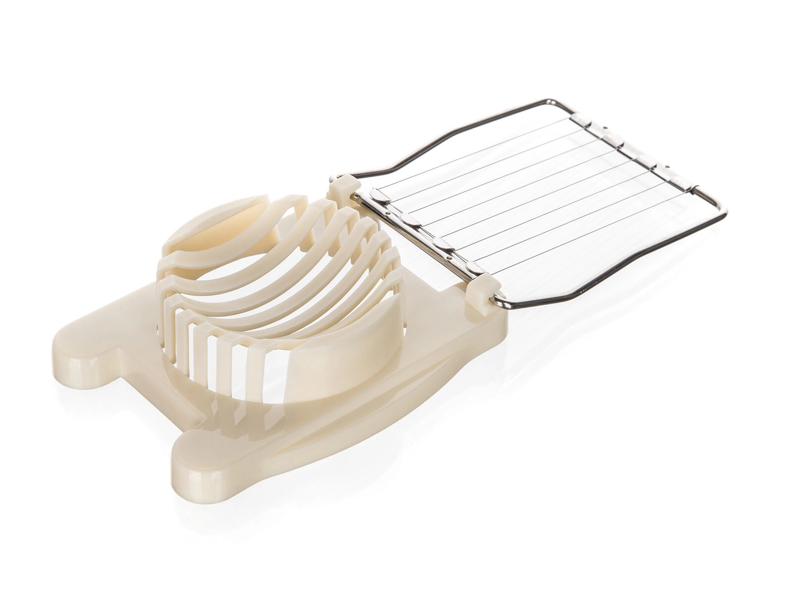 Le tranche-œufs pratique CULINARIA Cream facilite la préparation quotidienne des salades et des assiettes garnies. D’une seule pression, vous obtenez des tranches régulières grâce aux fils en acier inoxydable robustes. La base en plastique résistante avec berceau maintient l’œuf en place, et l’appareil est compatible lave-vaisselle pour un entretien aisé.