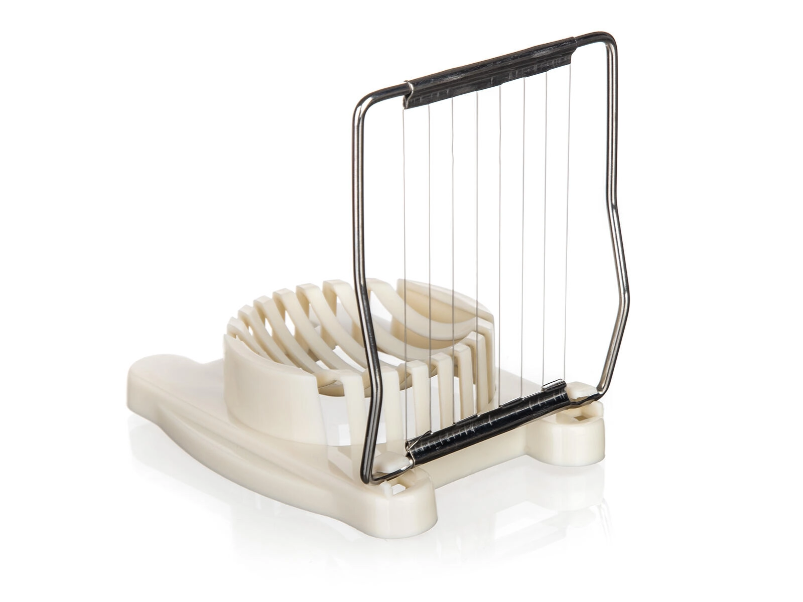 Des fils en inox rapprochés tranchent l’œuf rapidement et avec précision sans le déformer.