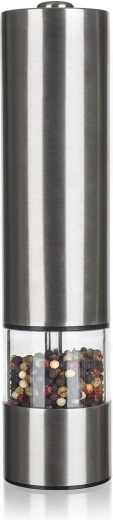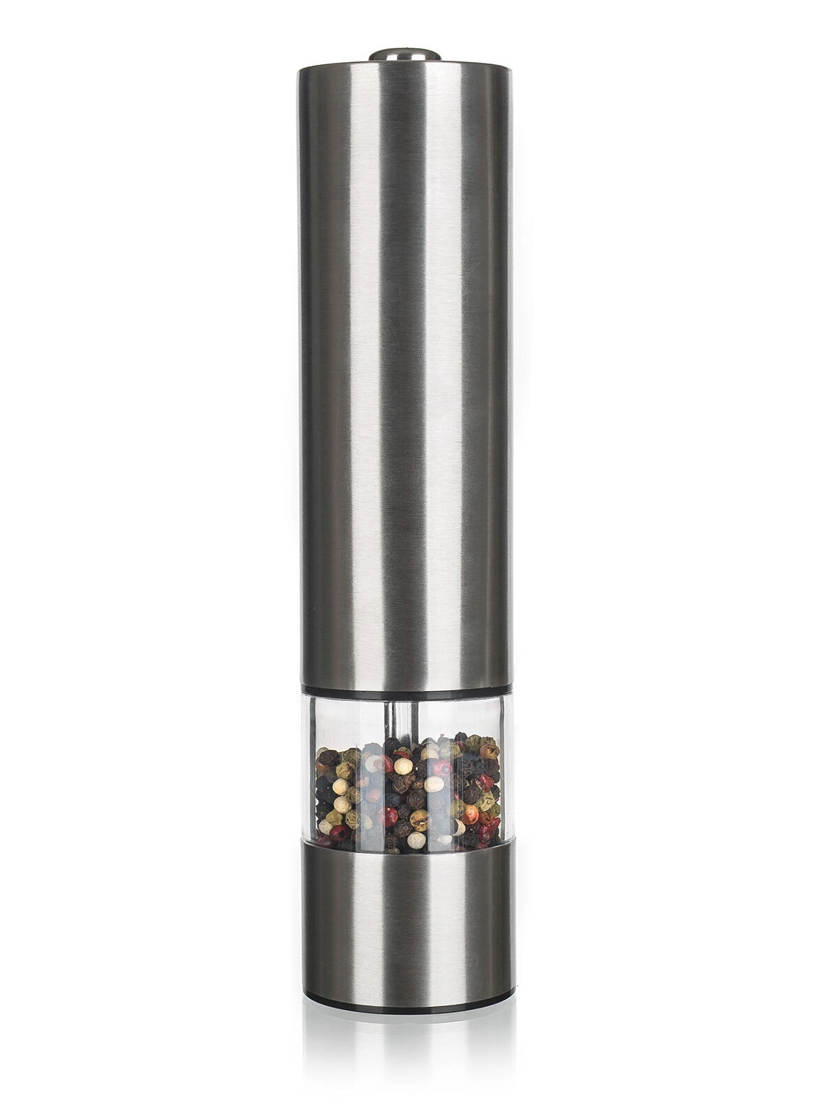 La commande pratique à bouton unique et le réglage de la granulométrie vous offrent un contrôle total sur l’assaisonnement de vos plats – de la fleur de sel finement moulue au poivre concassé grossier. L’alimentation est assurée par 4× piles AA (non incluses dans l’emballage), pour une utilisation partout, sans câble.