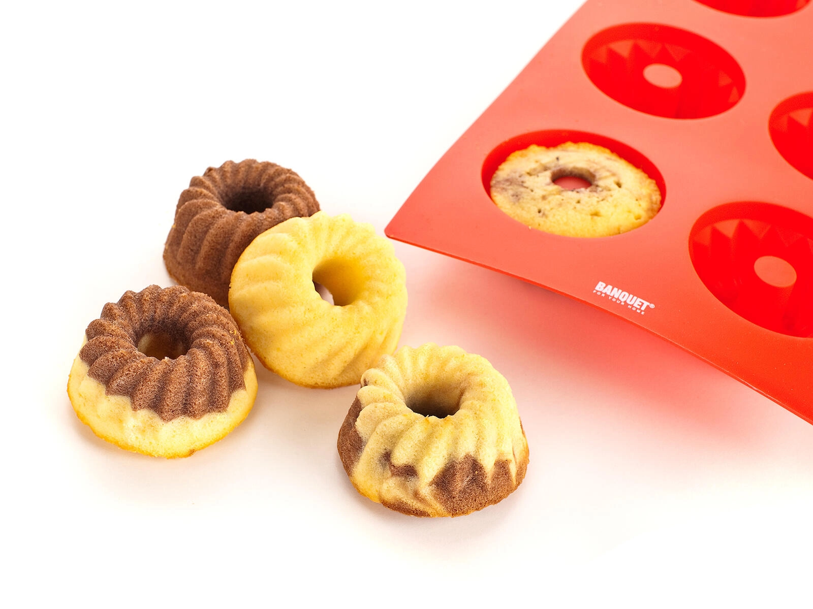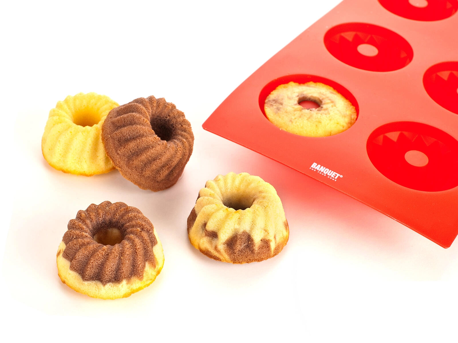Avec ce moule en silicone pour mini kouglofs CULINARIA, vous préparez des desserts parfaitement formés sans long graissage. Le silicone alimentaire de qualité est flexible, n’absorbe ni les odeurs ni les saveurs et, grâce à sa surface antiadhésive, assure un démoulage facile des pâtisseries.