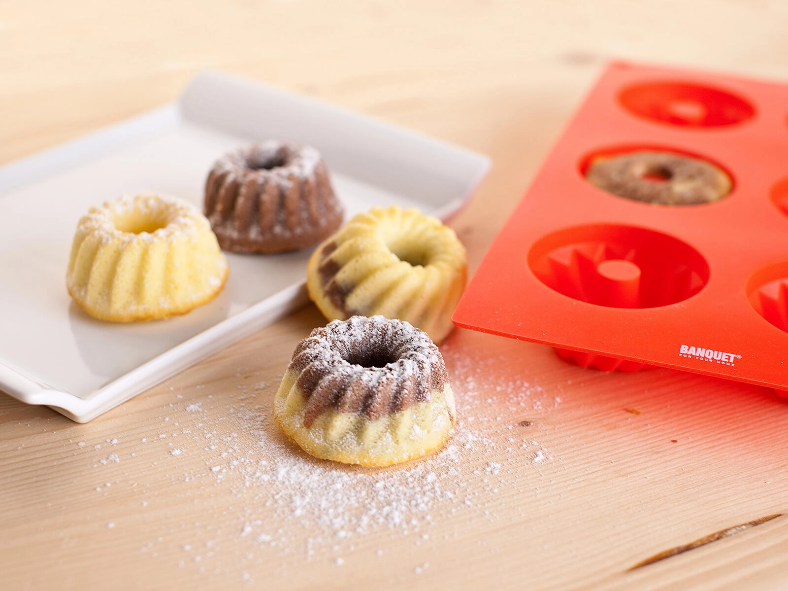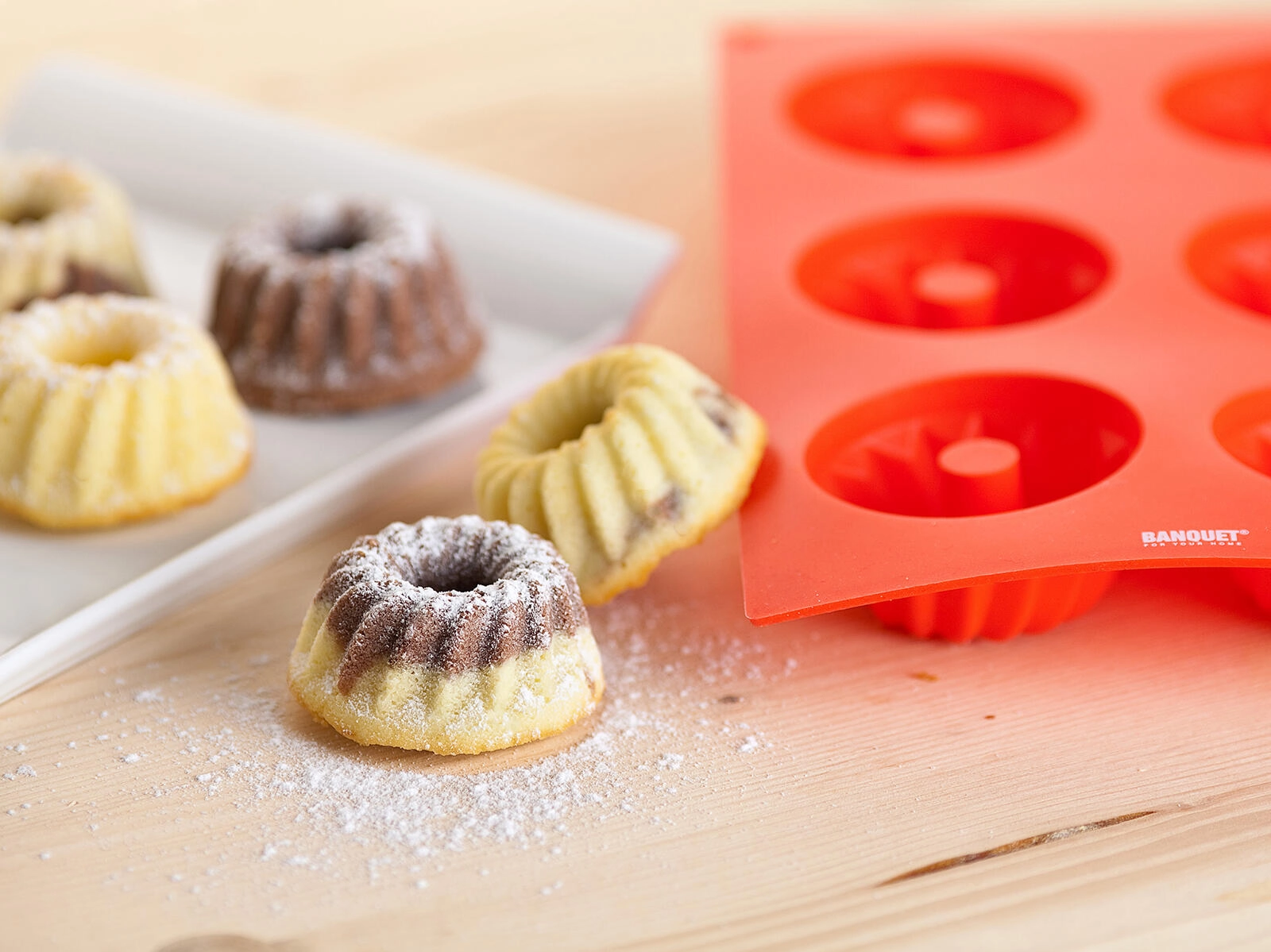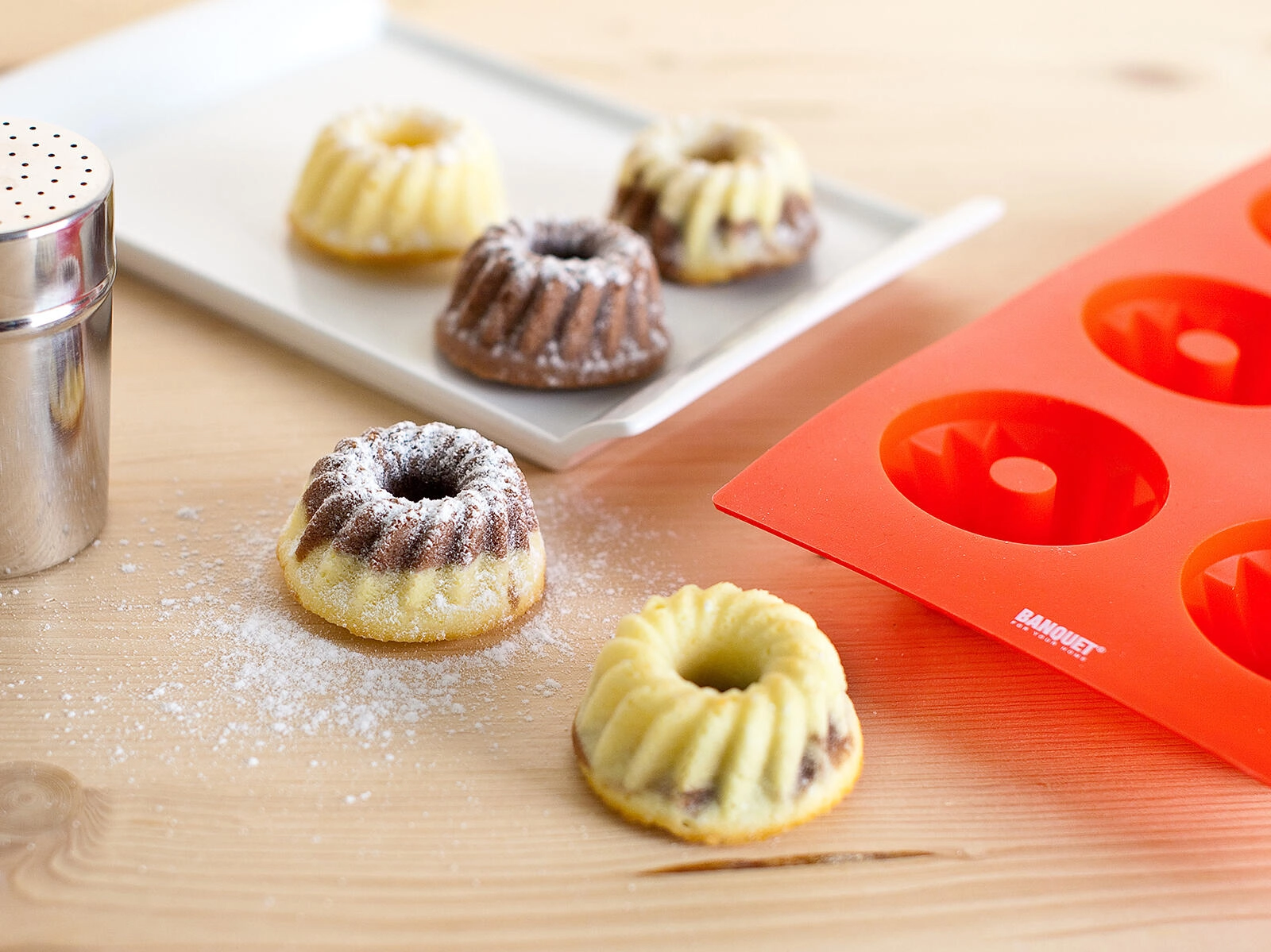 Le silicone flexible empêche la pâte d’adhérer et permet d’extraire facilement les mini kouglofs sans abîmer leur forme.