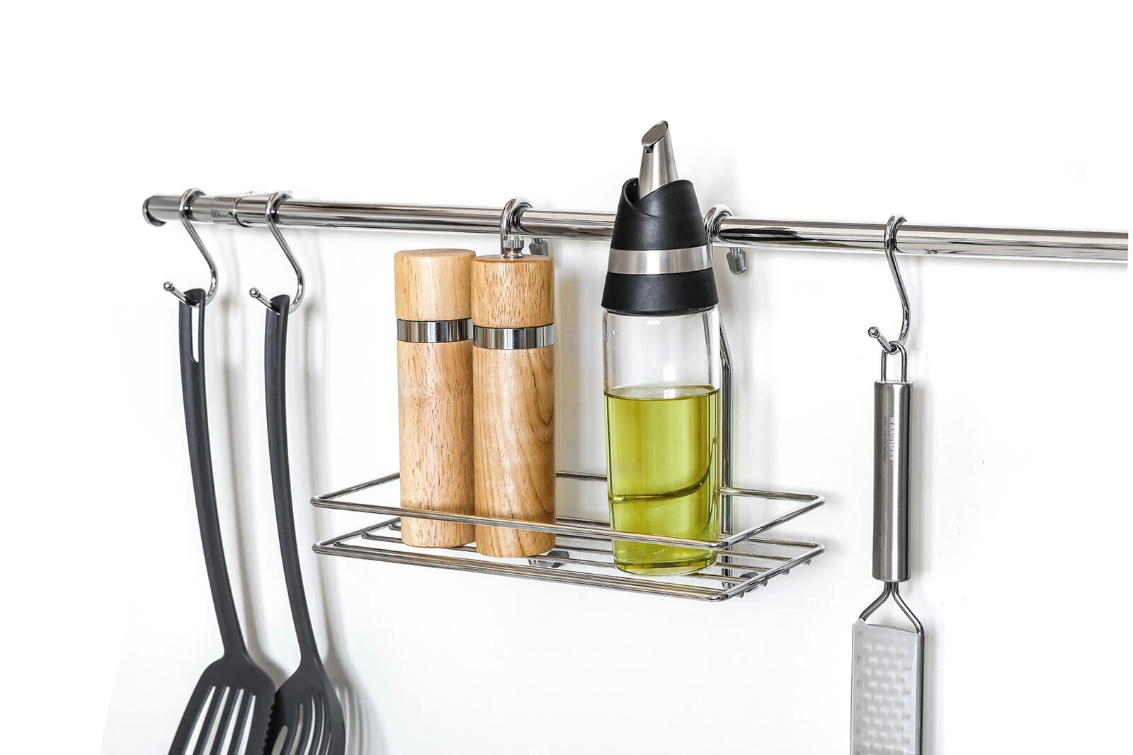La barre suspendue VARIELLA de 60 cm en acier chromé aide à garder la cuisine ordonnée avec tout à portée de main. Grâce à sa conception robuste et à son design universel, elle est idéale pour accrocher des crochets, des paniers et des torchons. Profitez de plus d’espace sur le plan de travail et d’une meilleure organisation avec cette barre de cuisine durable, économique en espace et élégante.