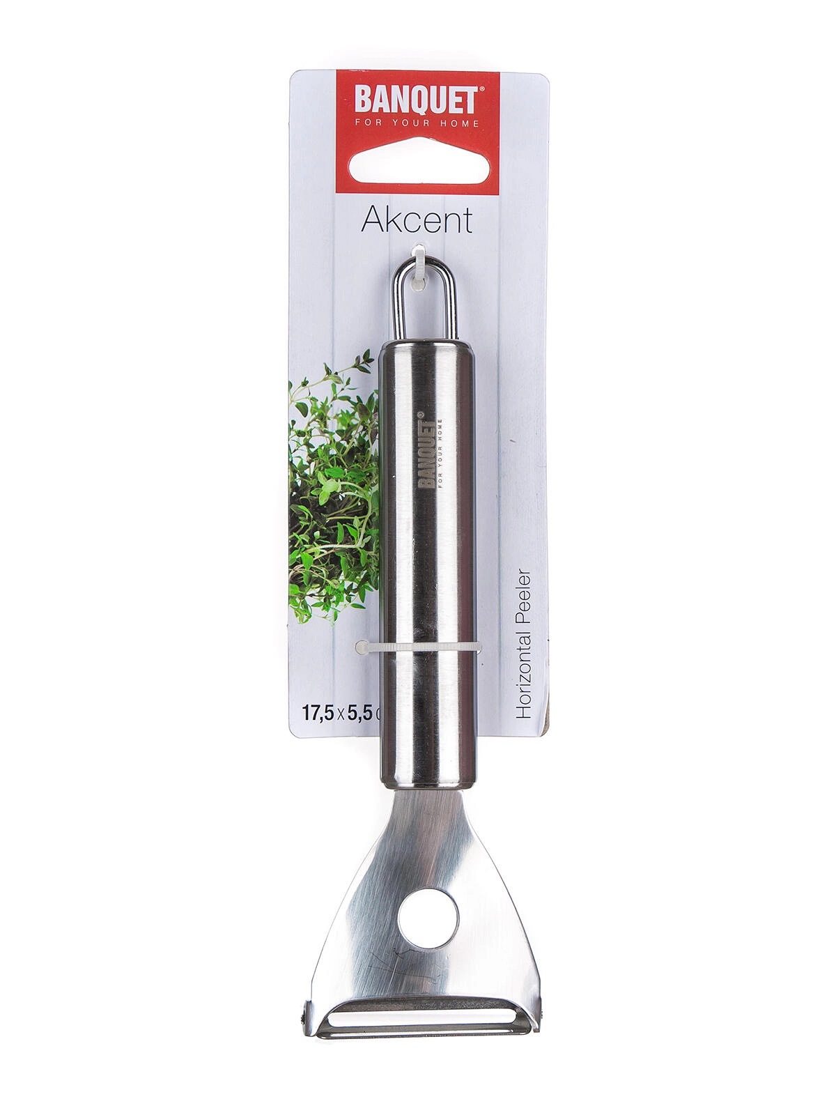 La gamme d’ustensiles de cuisine AKCENT répond aux exigences des professionnels tout en étant idéale pour un usage domestique quotidien. L’éplucheur est doté d’un œillet pratique pour être suspendu, ce qui économise de la place et le garde toujours à portée. Sa conception robuste permet un lavage sans problème au lave-vaisselle.