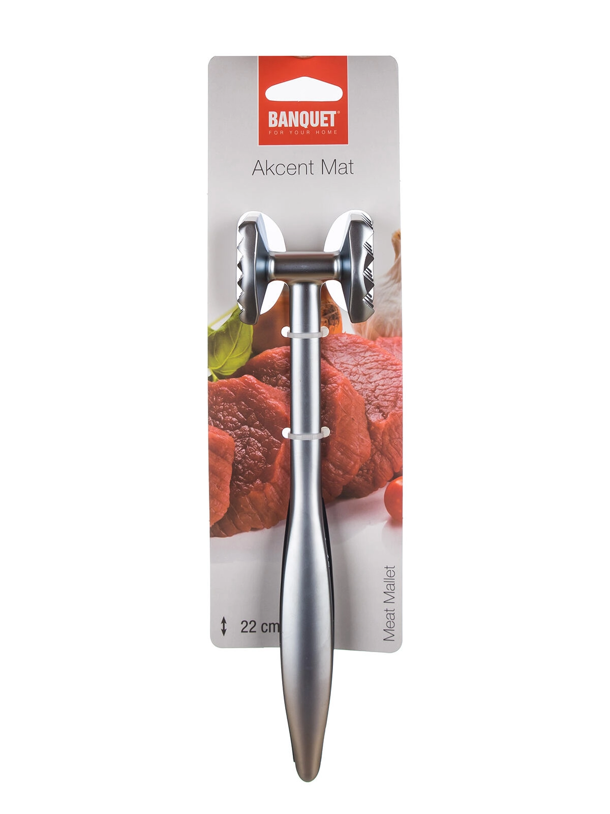 Le maillet à viande double face AKCENT est un assistant fiable pour préparer escalopes, grillades minute et steaks. Un côté de la tête est texturé pour attendrir efficacement les fibres, l’autre est lisse pour un martelage uniforme et l’égalisation des tranches. La finition mate de l’aluminium garantit durabilité et nettoyage aisé.