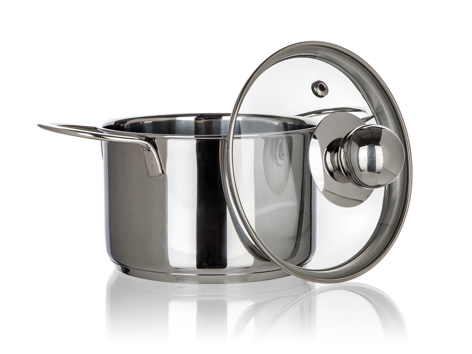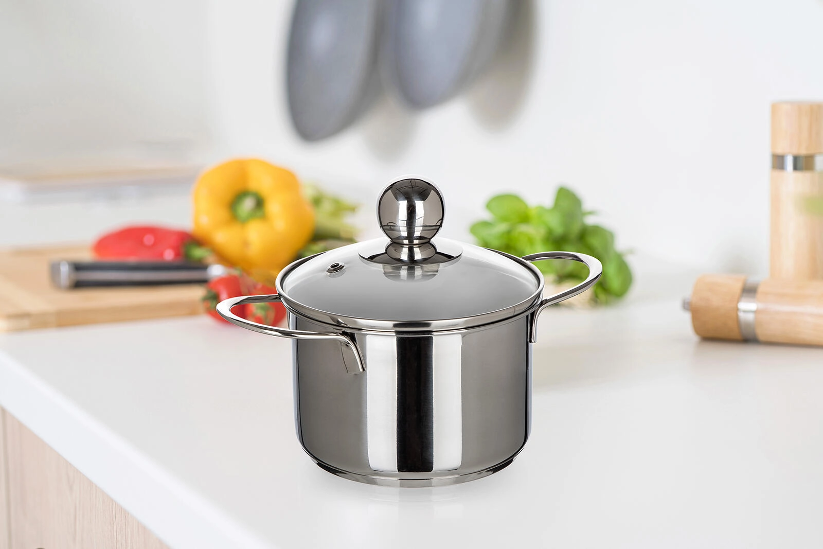 Casserole en acier inoxydable avec couvercle en verre 0,85 l, 12 cm PICCOLO