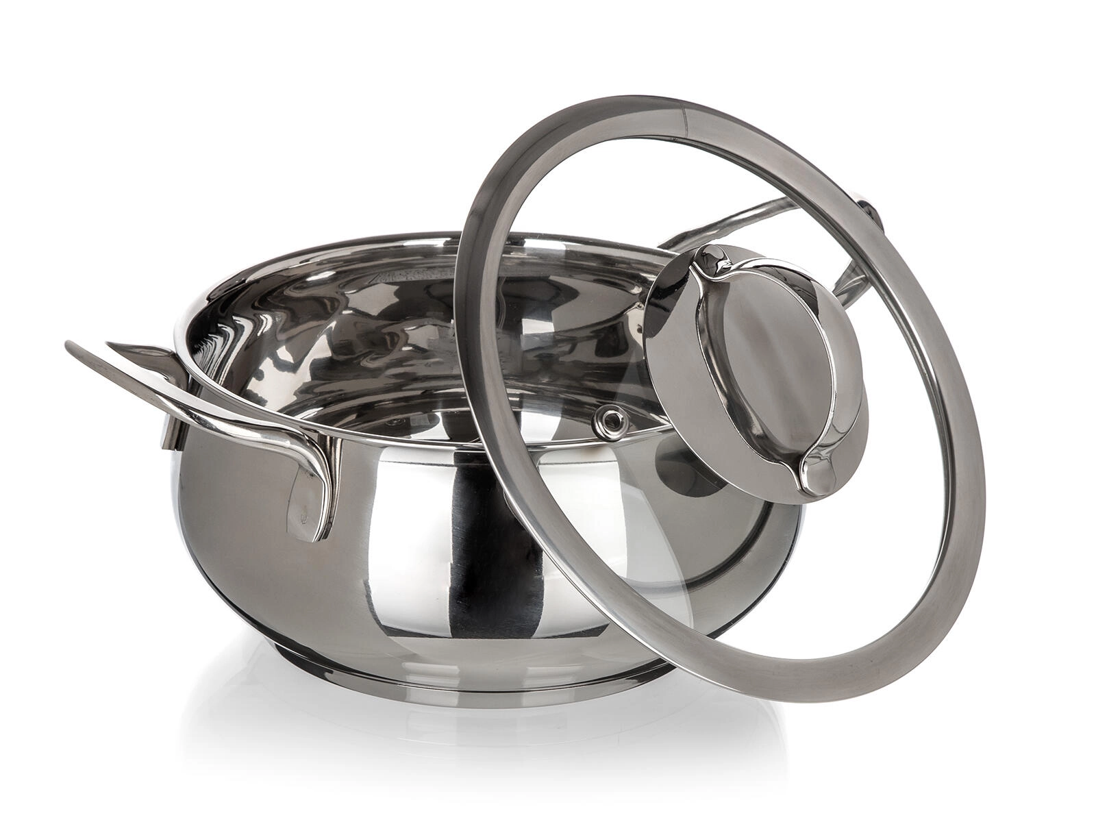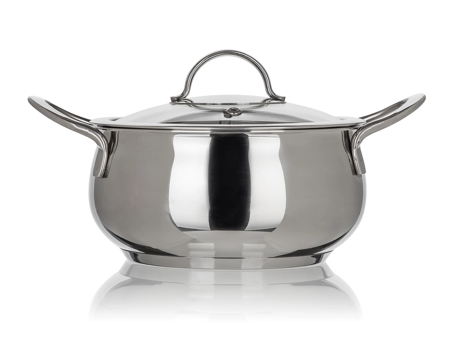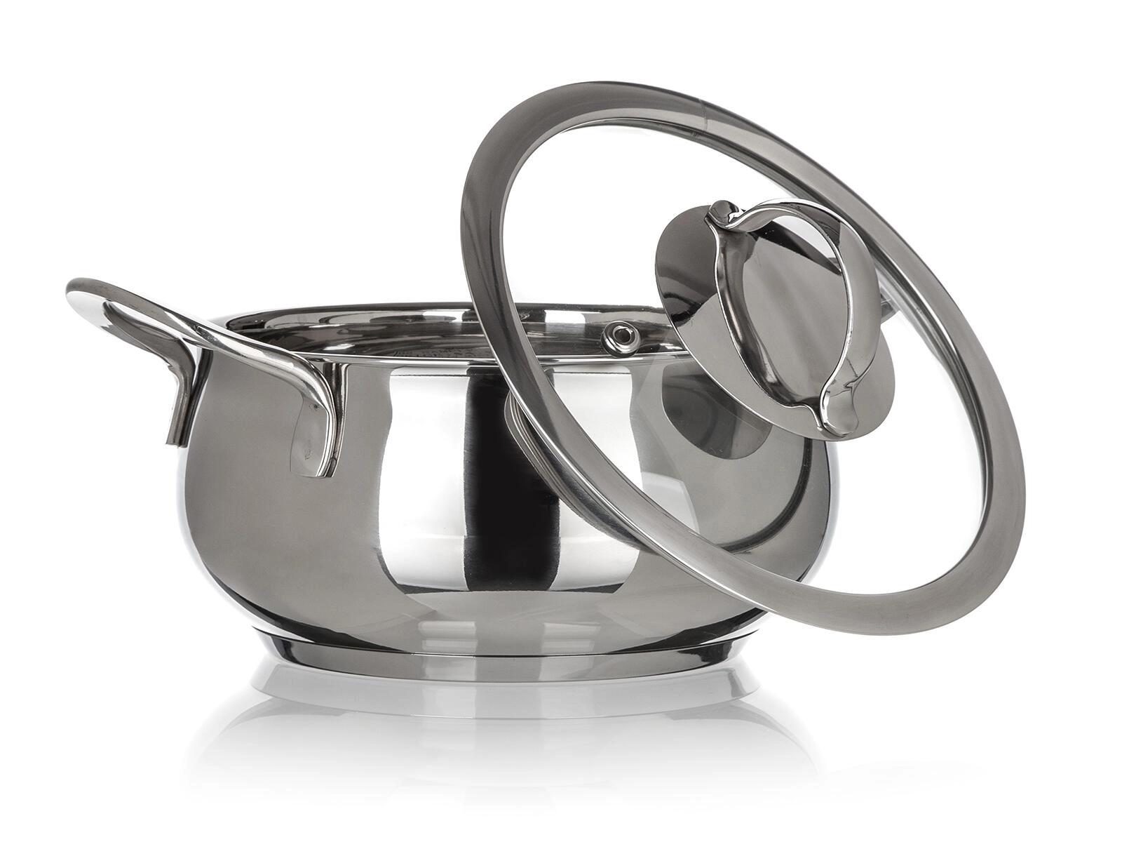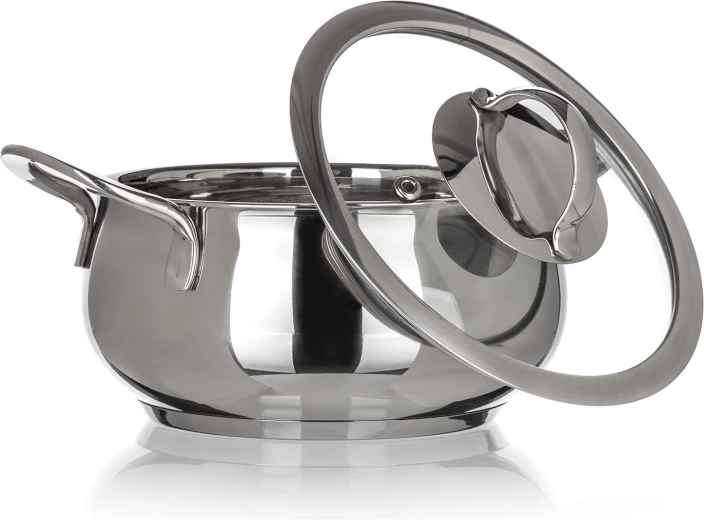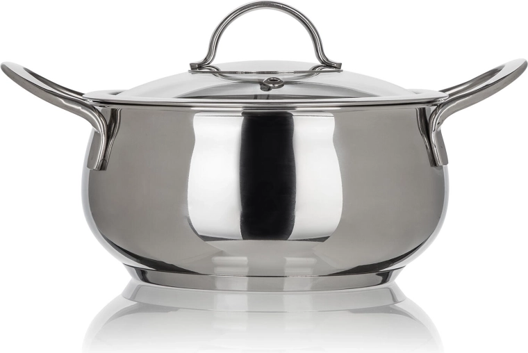 - Casserole en inox (casserole basse) avec couvercle en verre