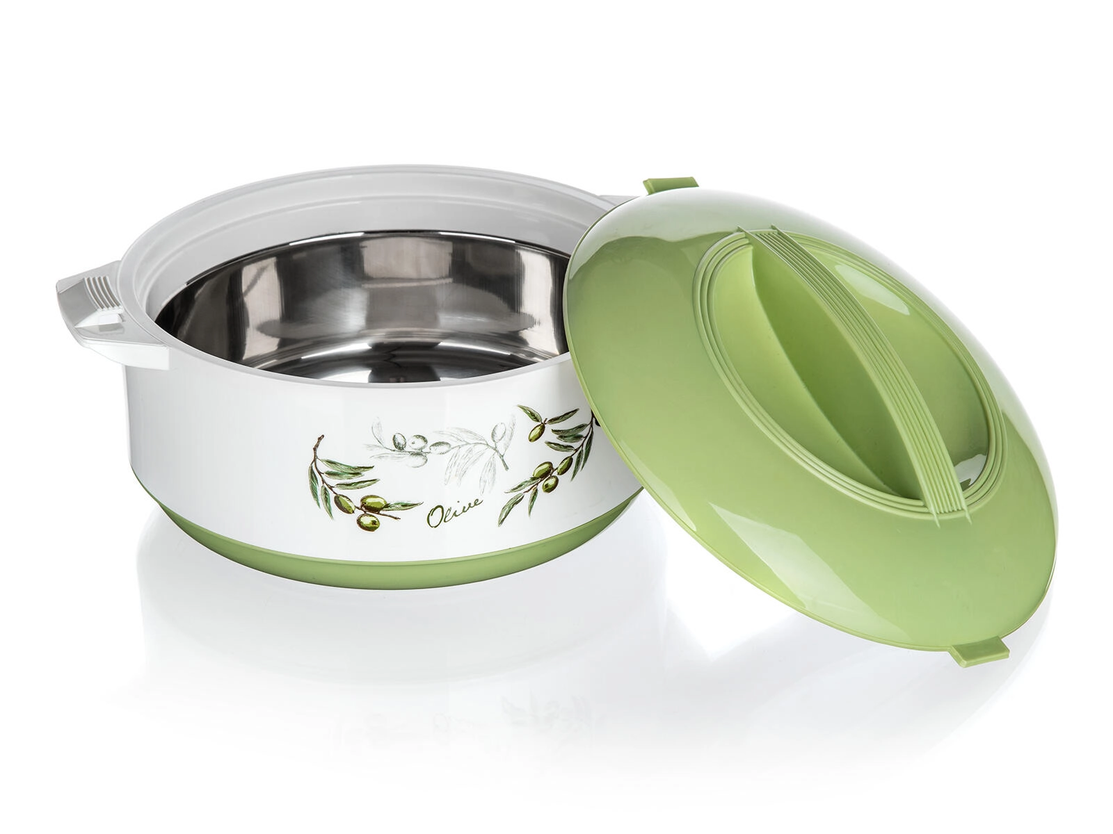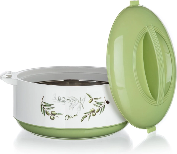 Avec son motif olives, son couvercle robuste et ses poignées latérales pratiques, elle assure un transport sécurisé sans pertes de chaleur inutiles. Un choix parfait pour celles et ceux qui veulent des plats prêts à être servis au bon moment.