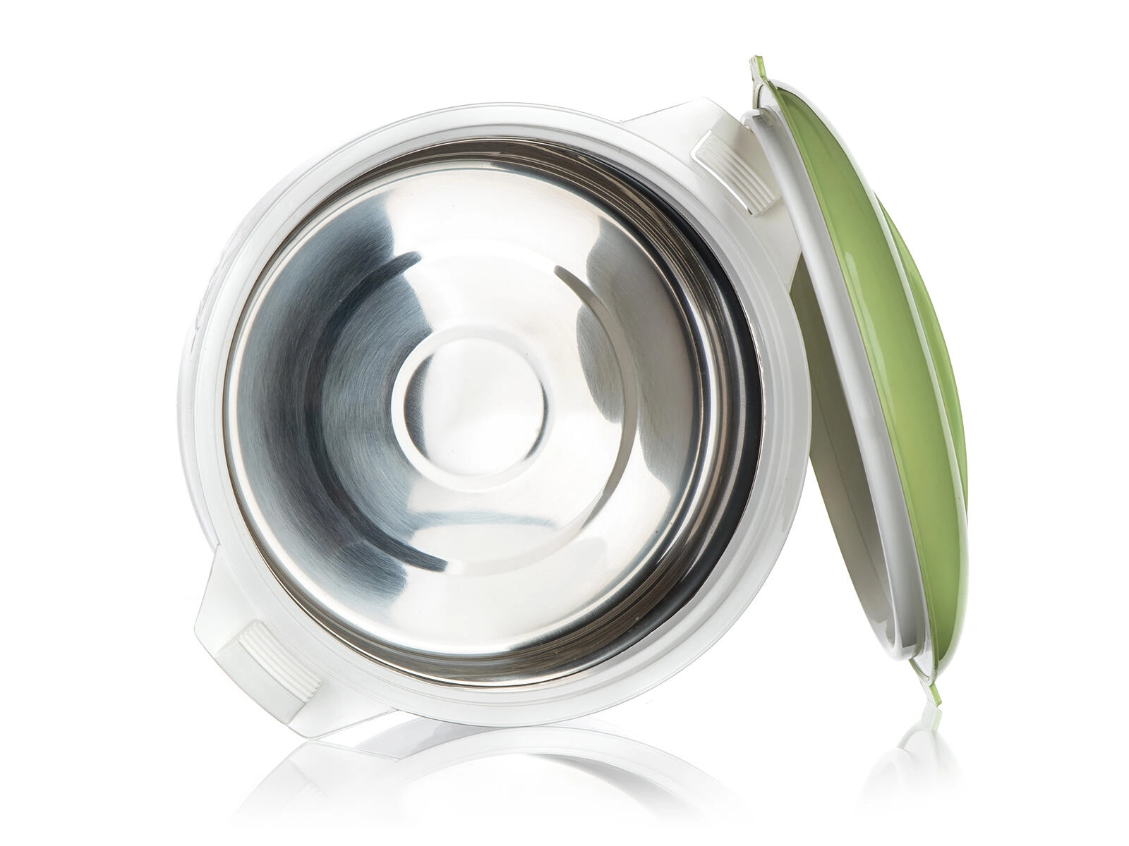 La thermobol BANQUET OLIVES d’un volume de 1,5 l est l’alliée idéale pour conserver des plats chauds comme froids. La cuve intérieure en inox est hygiénique, durable et facile à entretenir, tandis que l’isolation en mousse PUR entre les parois garantit une conservation prolongée de la température. Parfaite pour servir soupes, accompagnements, viandes, sauces ou salades à la maison comme en déplacement.