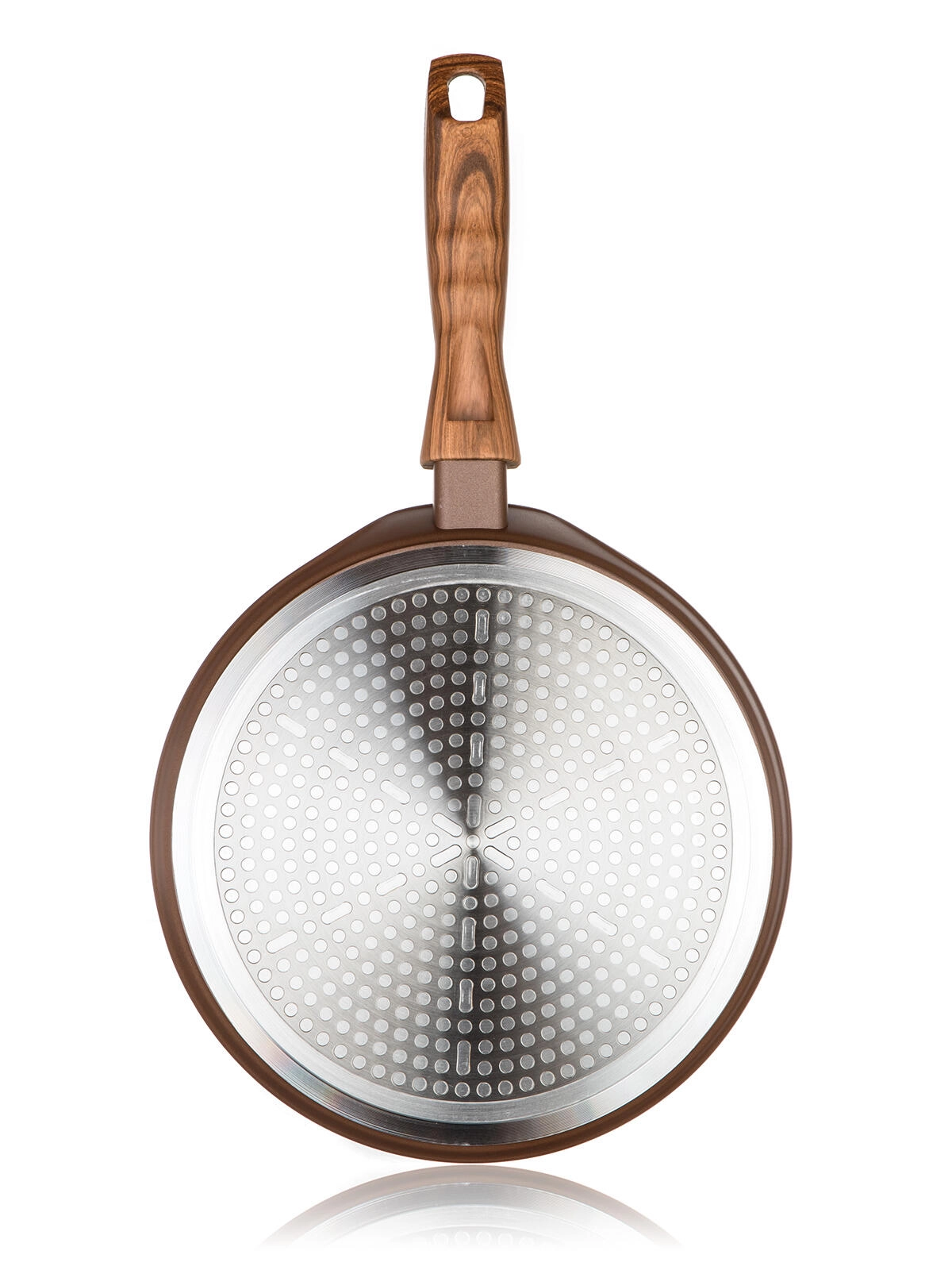 Poêle à crêpes légère et résistante de 24 cm de diamètre avec revêtement Smart Stone Brick assurant une cuisson uniforme, un retournement facile et un minimum d’adhérence. Grâce à son revêtement antiadhésif bi‑couche, son fond induction et sa poignée ergonomique soft touch, elle est idéale pour la préparation quotidienne de crêpes, pancakes et tortillas.