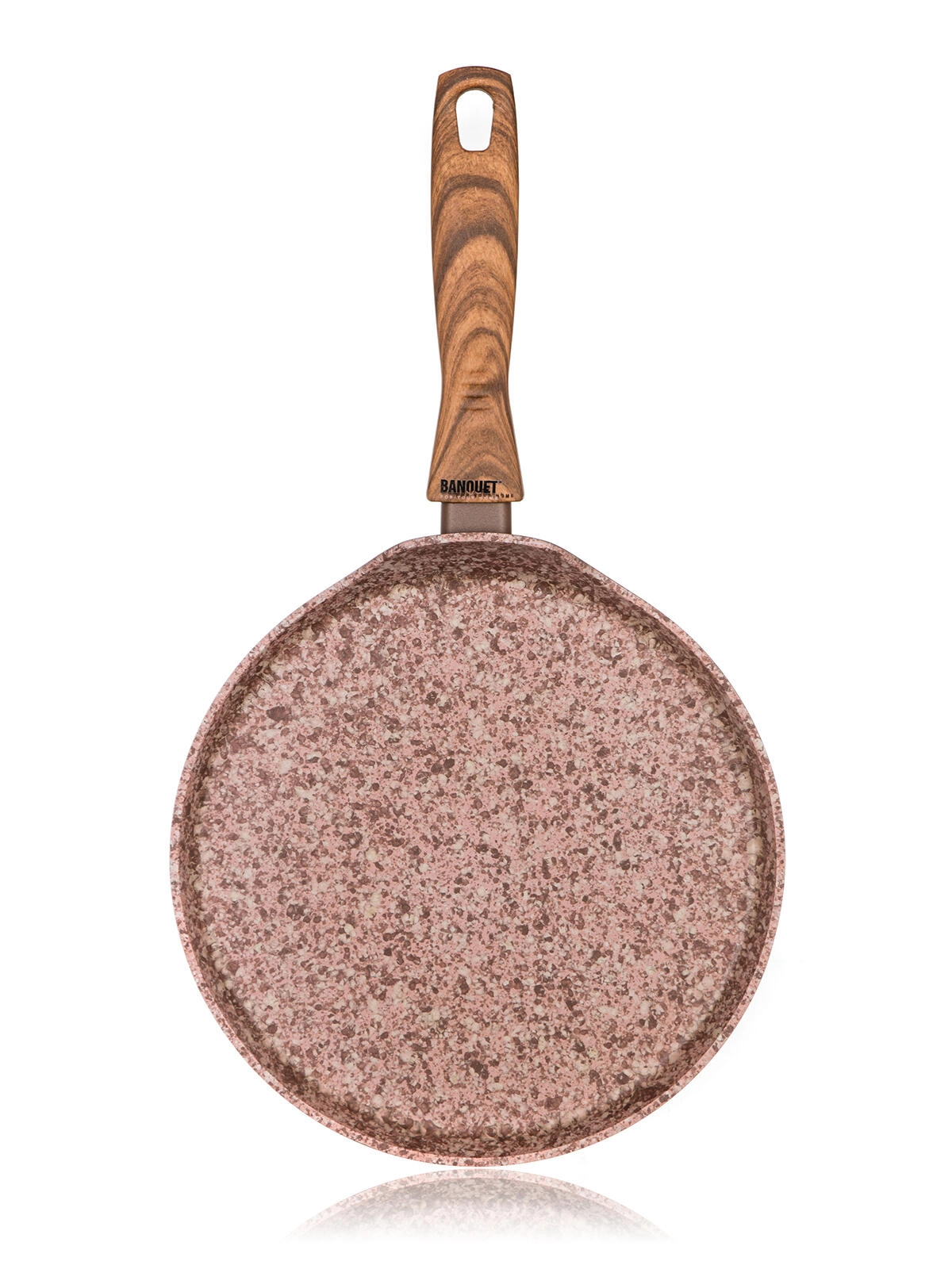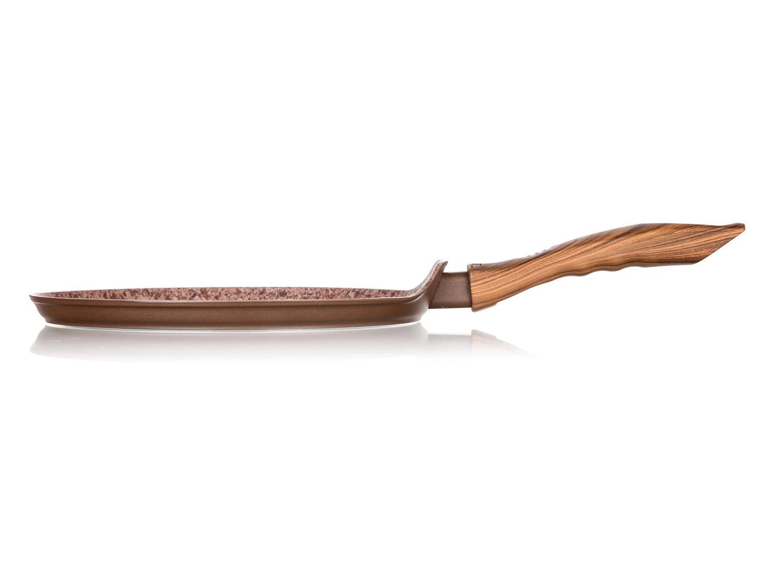 La crêpière Smart Stone Brick de 24 cm est fabriquée en aluminium forgé pour une montée en température rapide et une diffusion homogène. Son revêtement antiadhésif bi‑couche à structure de galet de rivière assure un démoulage facile des aliments et un nettoyage aisé. Le décor brique élégant à effet marbré est complété par une poignée ergonomique en bakélite avec finition soft touch au design bois naturel.