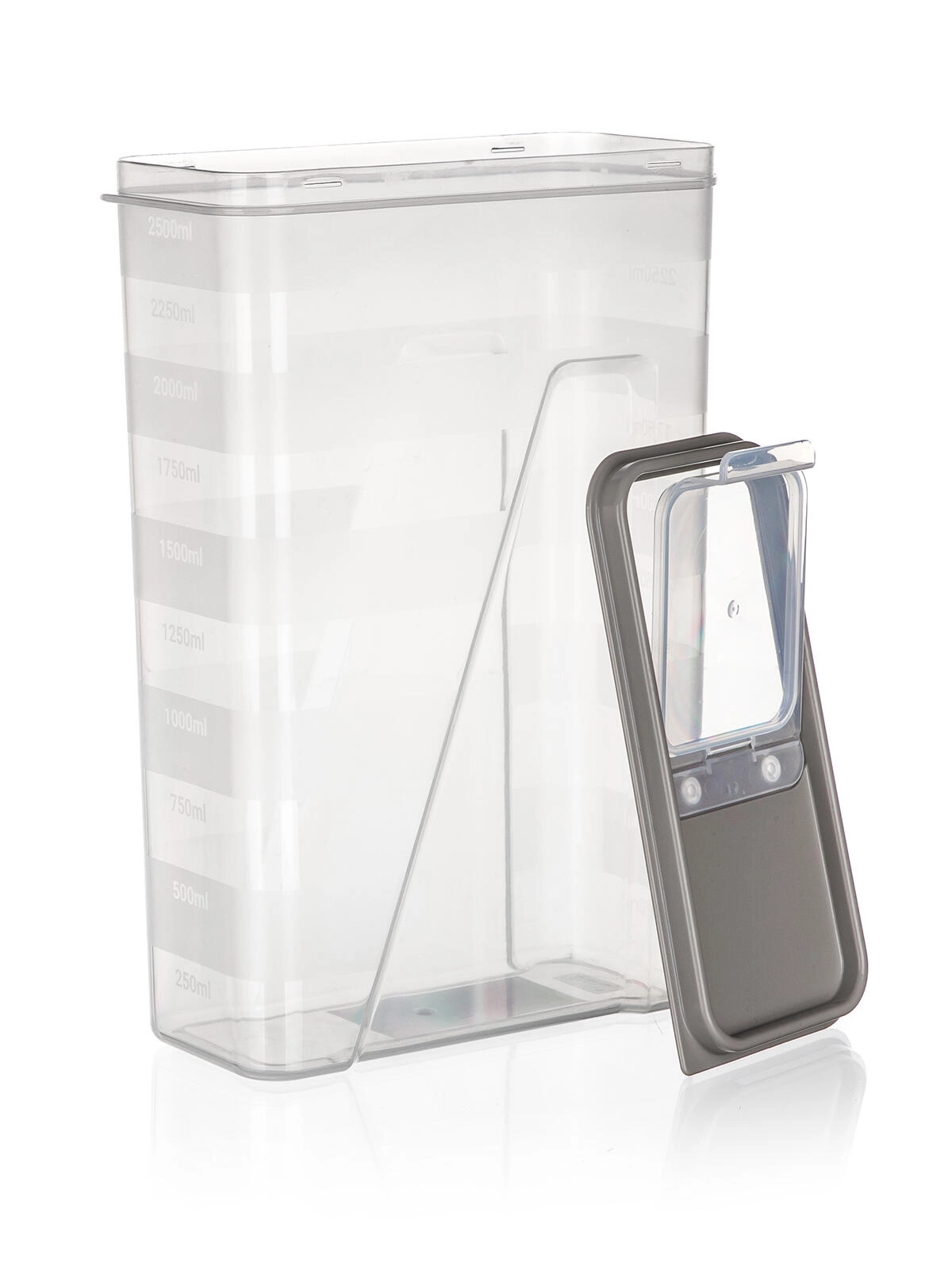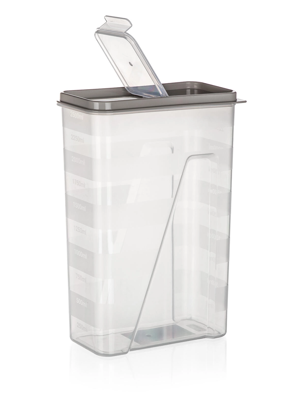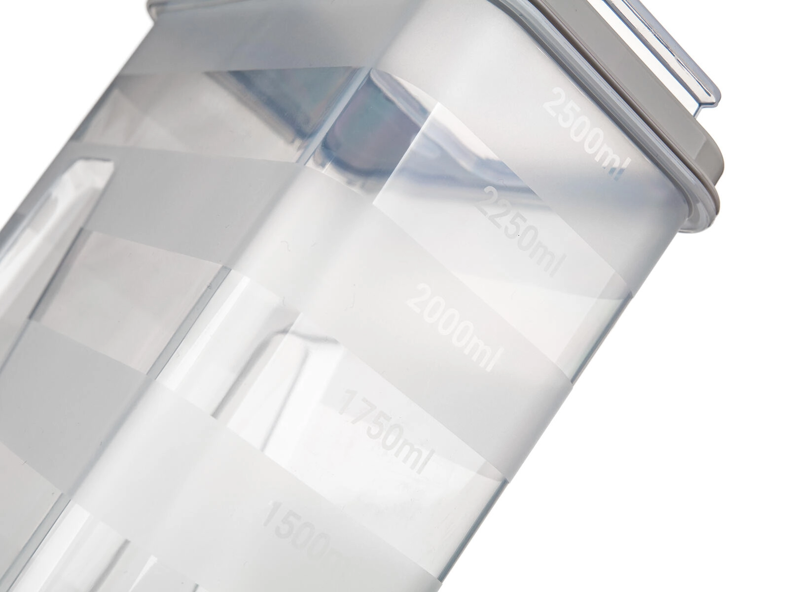 Les graduations tous les 250 ml vous aident à mesurer précisément les quantités pour la cuisine et la pâtisserie. La boîte est résistante, facile à nettoyer et, grâce à sa forme élancée et haute, elle économise efficacement de la place sur les étagères.