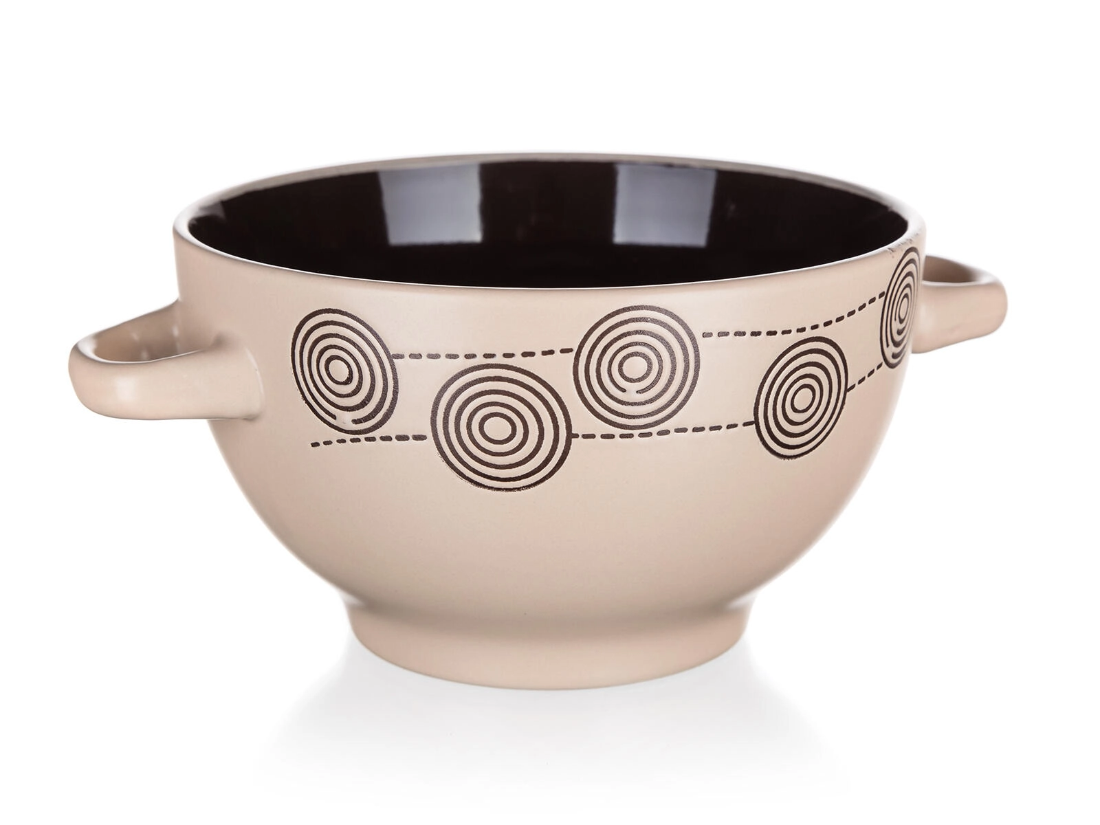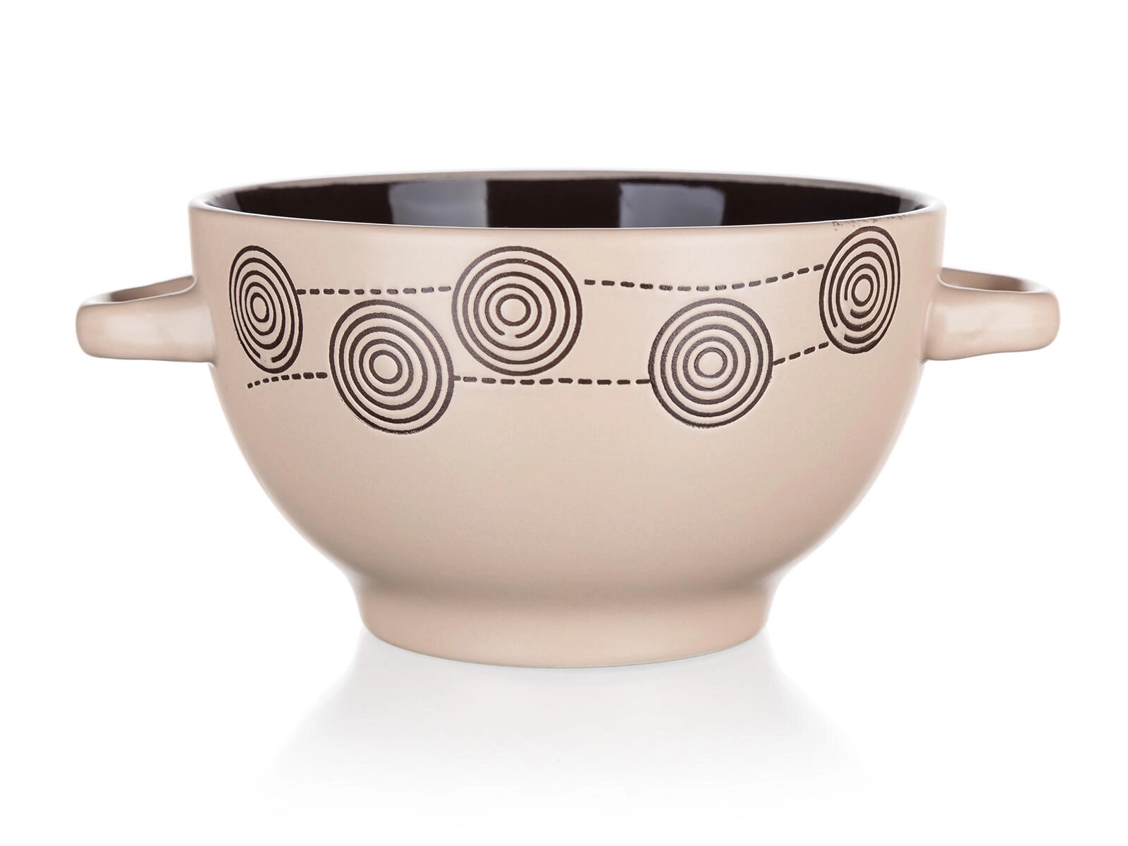 Élégant bol en céramique avec décor Spirale de couleur crème, idéal pour une utilisation quotidienne. Il offre une contenance de 660 ml, des anses confortables et un entretien facile – compatible avec le micro-ondes et le lave-vaisselle. Son design stylé se distingue dans chaque cuisine et, grâce à ses dimensions pratiques, il convient aux soupes, céréales et accompagnements.