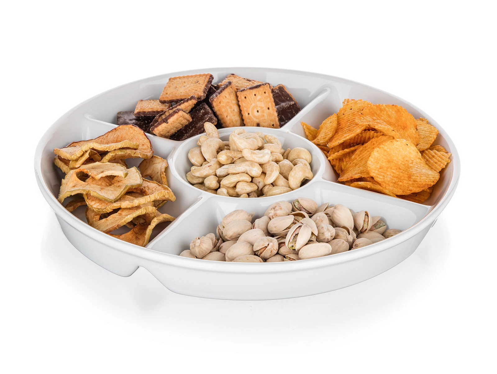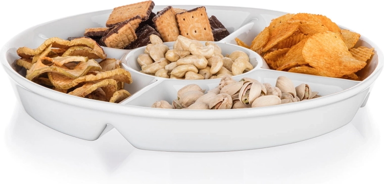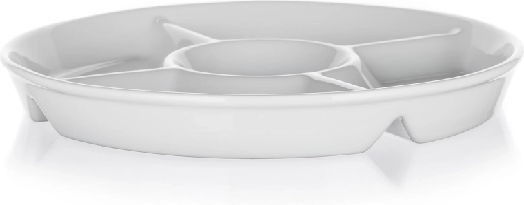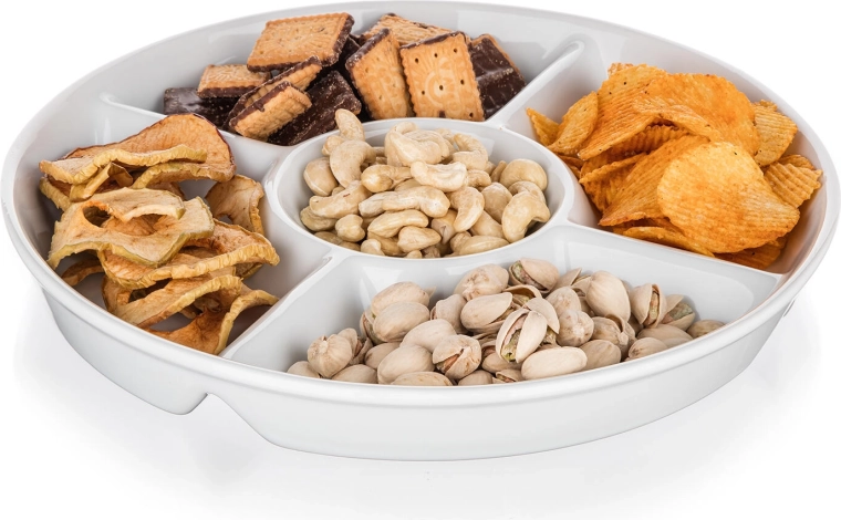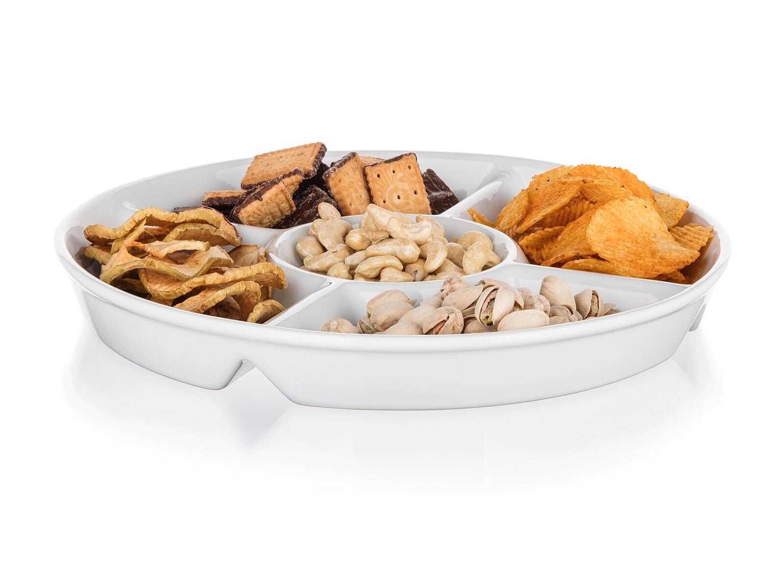 Les multiples compartiments permettent de servir différentes gourmandises sans mélanger les saveurs – idéal pour dips, snacks et crudités.