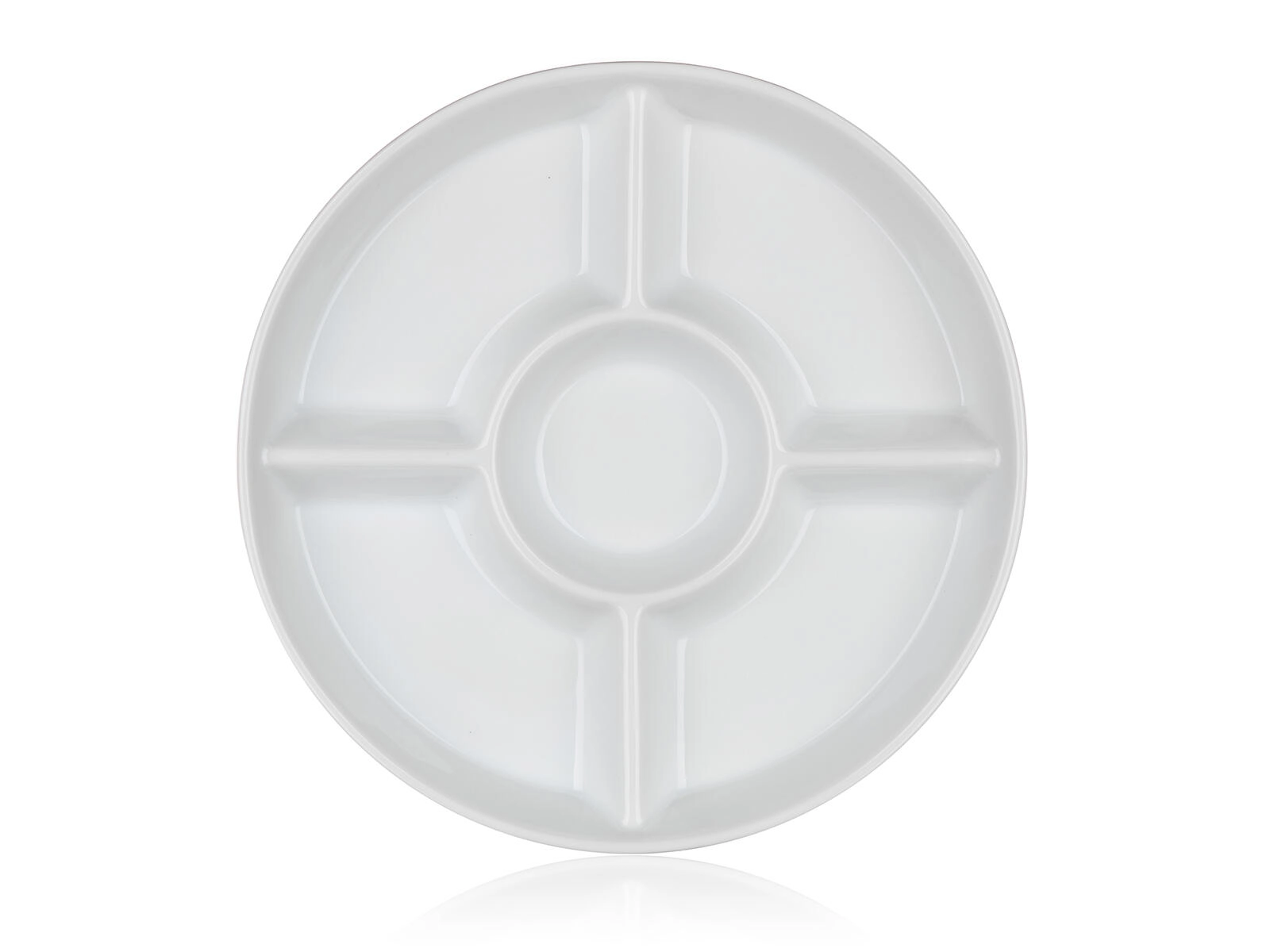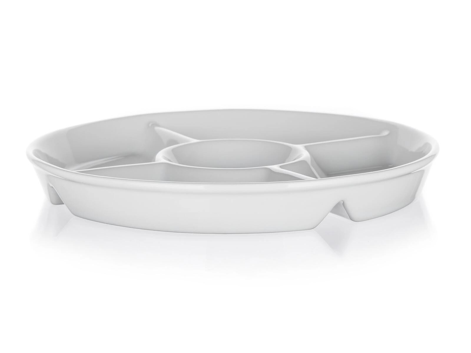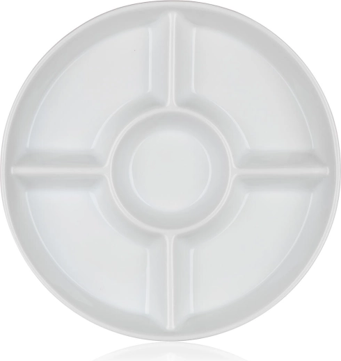 Élégant bol de service compartimenté en porcelaine de qualité BIANCA d’un diamètre de 30 cm dans une couleur blanche universelle. Le partage en sections garde les saveurs séparées – idéal pour dip, noix, chips, fruits et légumes. Entretien facile, compatible lave-vaisselle et parfait pour un usage quotidien comme pour les réceptions.