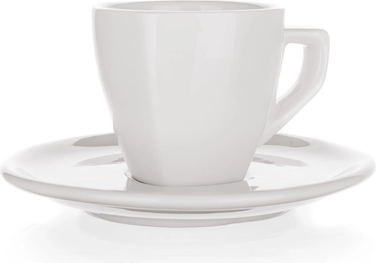 Tasse en porcelaine avec soucoupe ALBA 60 ml, carrée, blanche
