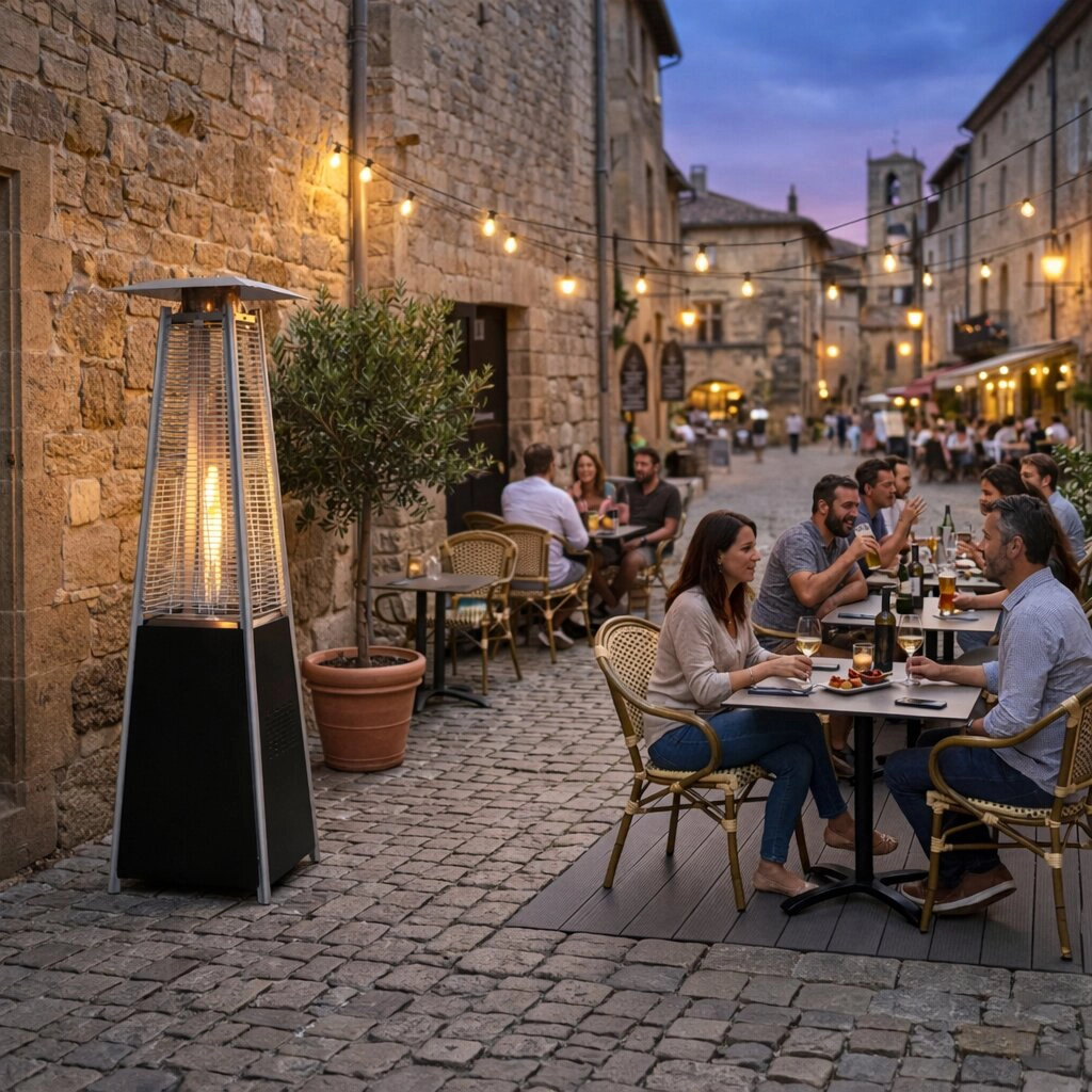 Le chauffage au gaz MULTIGARDEN transforme votre terrasse, jardin ou espace extérieur en une zone de détente confortable. Une flamme haute et visible derrière un écran en verre résistant crée une ambiance chaleureuse, tandis qu’une large diffusion de chaleur rayonnante assure un réchauffement uniforme des alentours. Son design moderne s’harmonise facilement avec une terrasse de restaurant, une pergola ou une terrasse à domicile.
