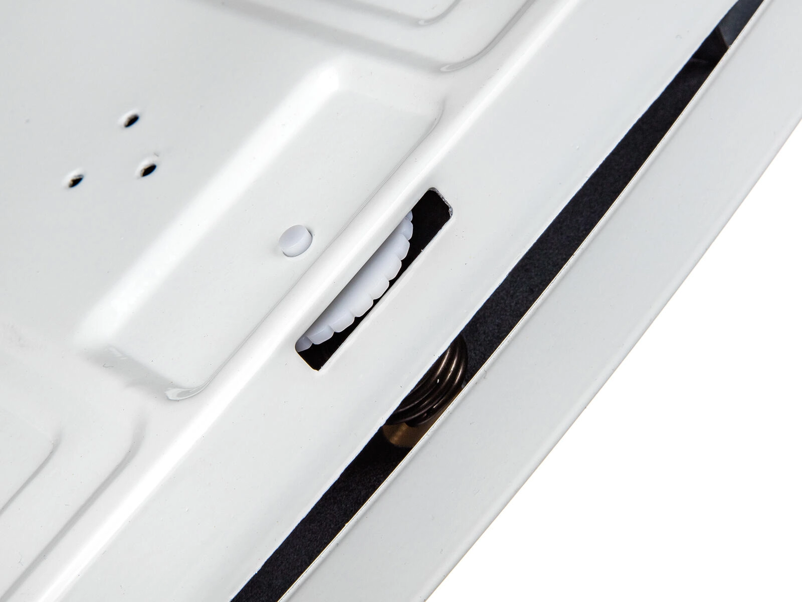 Ses dimensions compactes de 26,5 × 26,5 cm économisent de la place et permettent un rangement facile. La molette pratique de remise à zéro (tare) assure une mesure précise avant chaque utilisation. Sa construction solide combinant plastique et éléments métalliques est durable pour un usage quotidien.