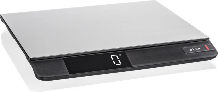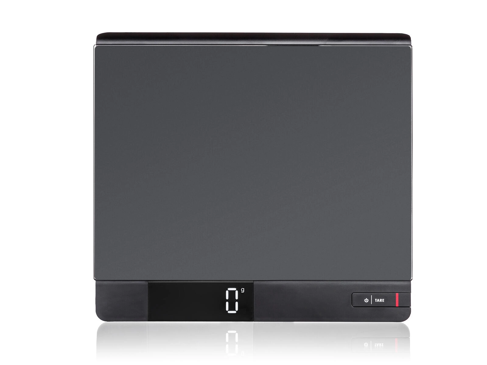 Un grand écran bien lisible assure une lecture rapide. La surface lisse s’essuie simplement et, grâce au corps fin, la balance se range facilement.