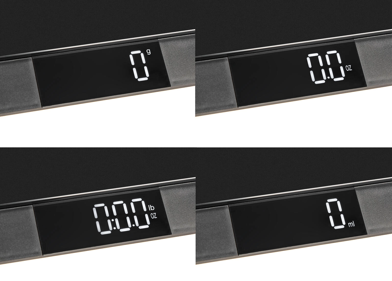 D’un simple toucher, mettez à zéro le poids du récipient et passez facilement entre g, oz, lb:oz et ml pour un usage polyvalent en cuisine.