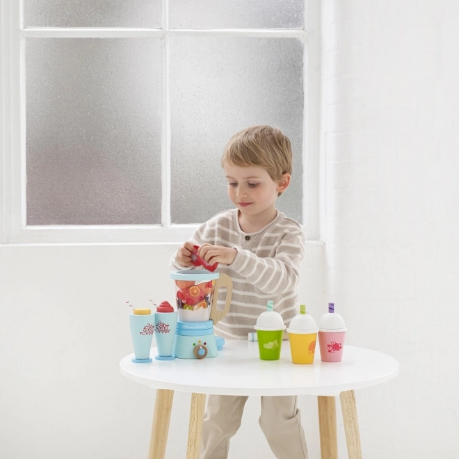 - Accessoires riches : mixeur avec bol amovible, 6 fruits, couteau, 2 verres avec pailles et décoration.