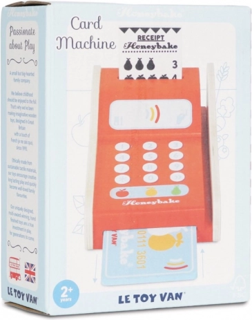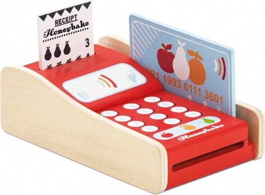 Le terminal de paiement pour enfants en bois massif d’hévéa complètera toute cuisine ou boutique de jeu. Grâce à son apparence réaliste, à ses boutons et à sa fente pour carte, les enfants exercent leurs compétences sociales, la communication et les premiers calculs. Le jouet est solide, durable et conçu pour résister à un usage quotidien.