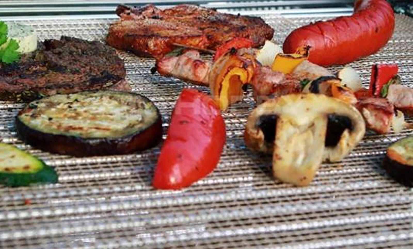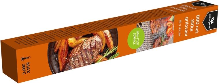 Pratique tapis de grillage avec revêtement antiadhésif aux dimensions 40 × 33 cm, il garantit une cuisson parfaite des petits morceaux de viande, de légumes ou de champignons sans brûler ni tomber à travers la grille. Convient pour le barbecue et le four, avec une résistance à la chaleur jusqu’à 260 °C, réutilisable et facile à nettoyer.