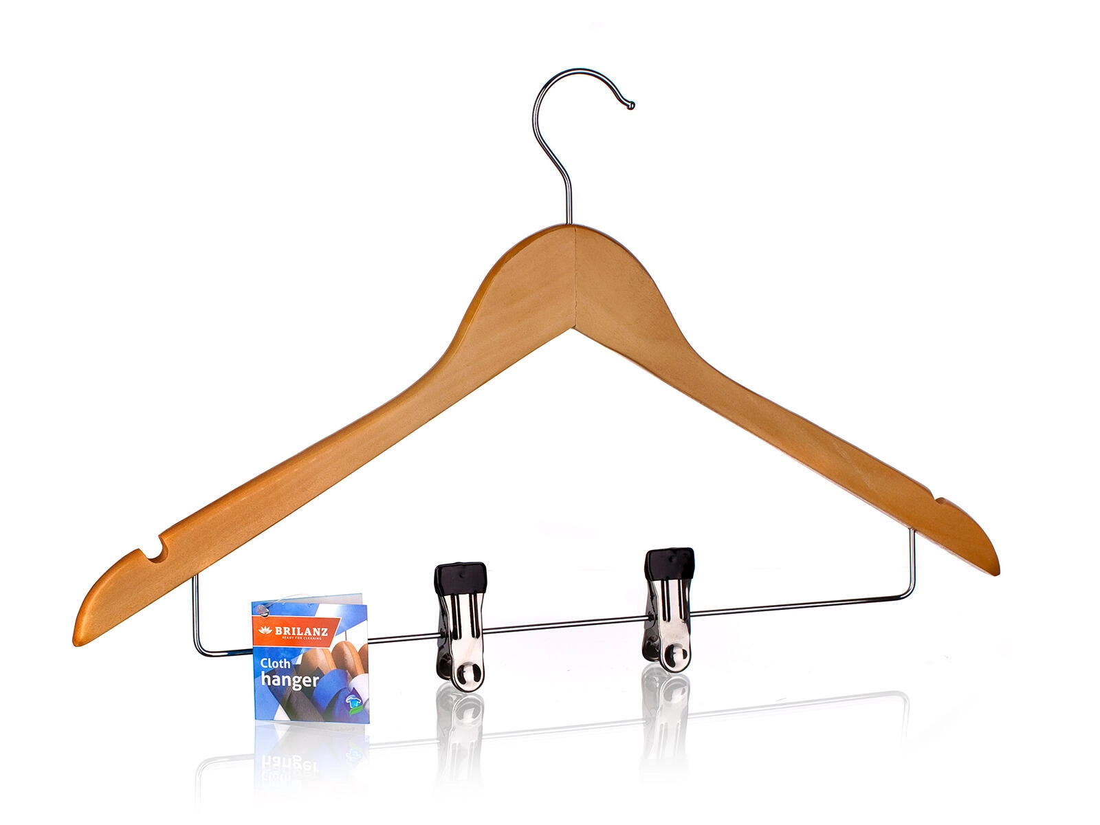 Élégant et résistant, ce cintre en bois avec pinces garde vos vêtements droits et sans froissage. Les pinces chromées à prise ferme maintiennent en toute fiabilité les pantalons, jupes ou accessoires, tandis que le crochet métallique pivotant facilite la suspension dans toute armoire.