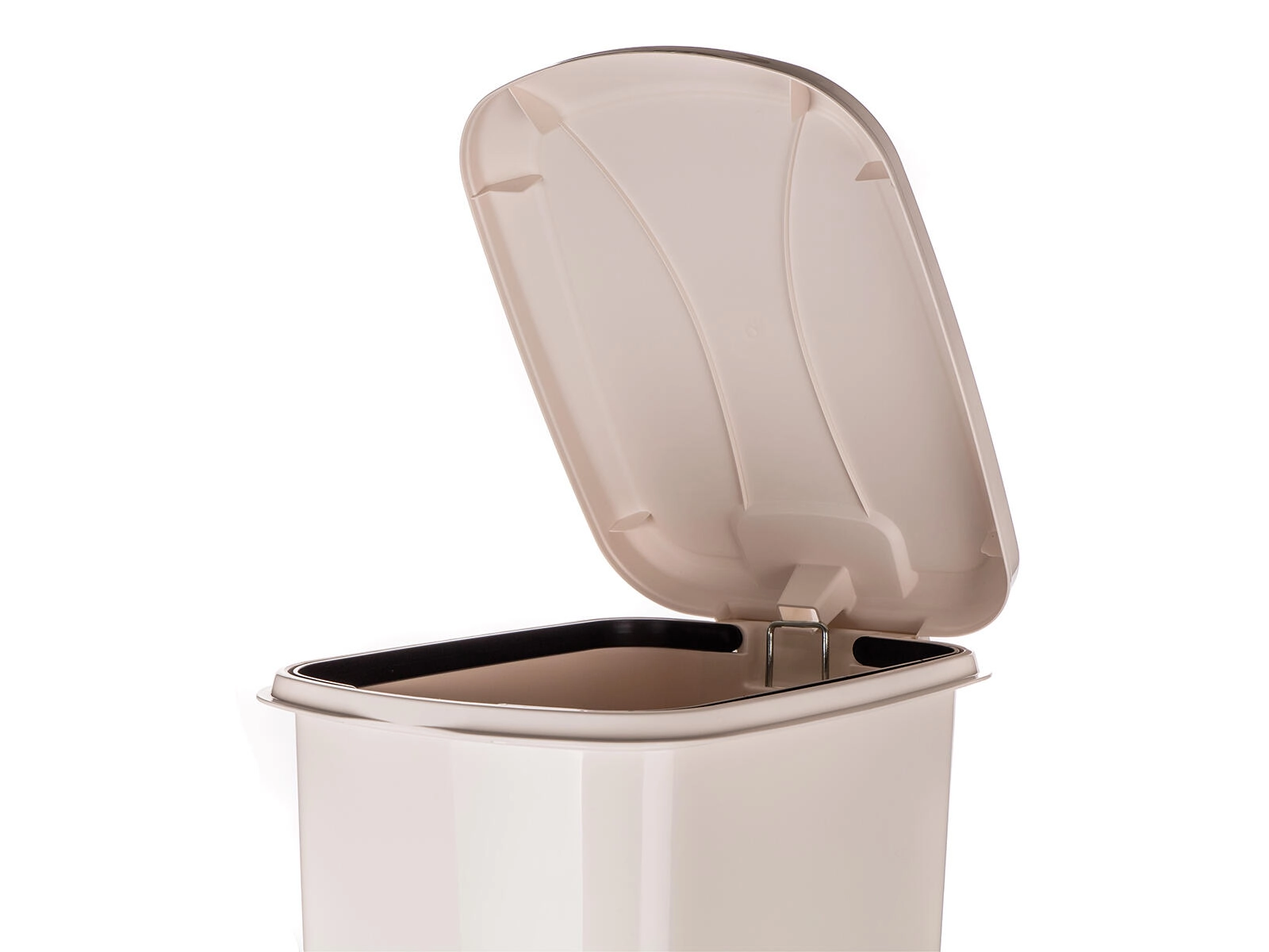 La poubelle à pédale STEP de 25 litres en coloris crème est un choix idéal pour tout intérieur moderne. Sa construction robuste en plastique assure une longue durée de vie, tandis que le mécanisme à pédale permet d’ouvrir le couvercle sans les mains – une solution extrêmement hygiénique et confortable pour un usage quotidien.