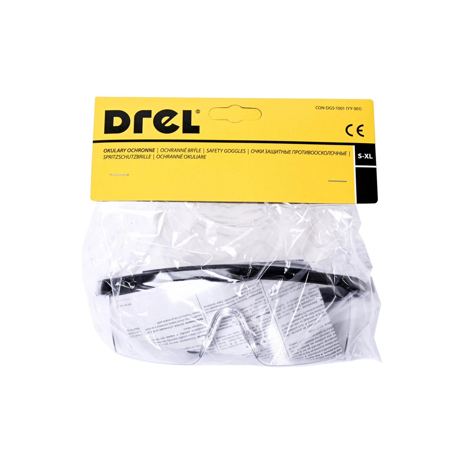 Les lunettes de protection transparentes DREL allient grand confort de port et protection efficace. La forme enveloppante avec écrans latéraux offre un large champ de vision et une couverture multidirectionnelle, minimisant le risque d’impact d’éclats, de poussières et de projections de liquides. Leur conception légère en plastique résistant se nettoie facilement et convient à un port prolongé.