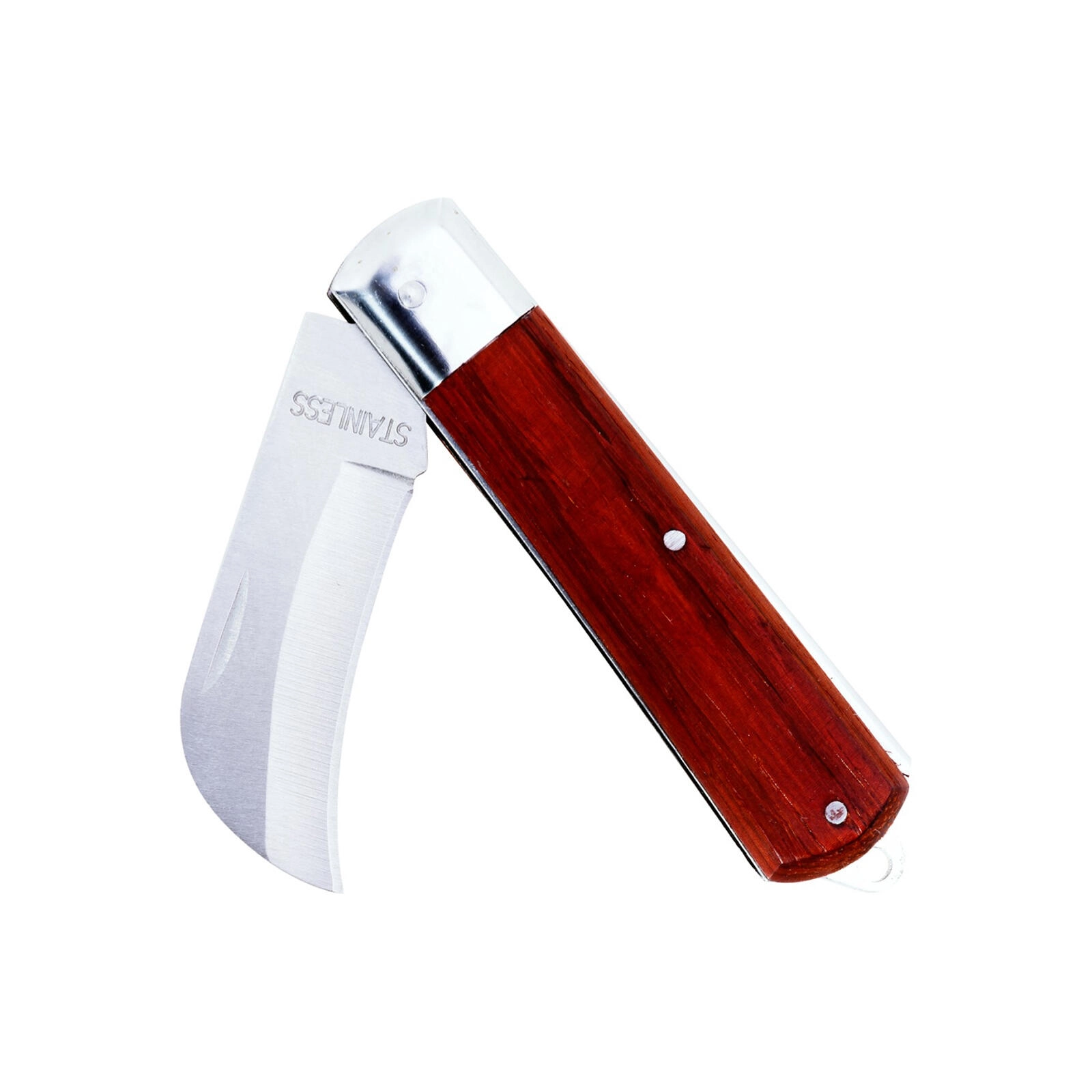 Couteau de greffage de jardin pratique et résistant de 195 mm pour des coupes précises lors du greffage comme des travaux courants. Il offre une poignée ergonomique avec plaquettes en bois, une lame robuste avec étui et un usage polyvalent au jardin, à l’atelier, en camping ou à la cueillette de champignons.