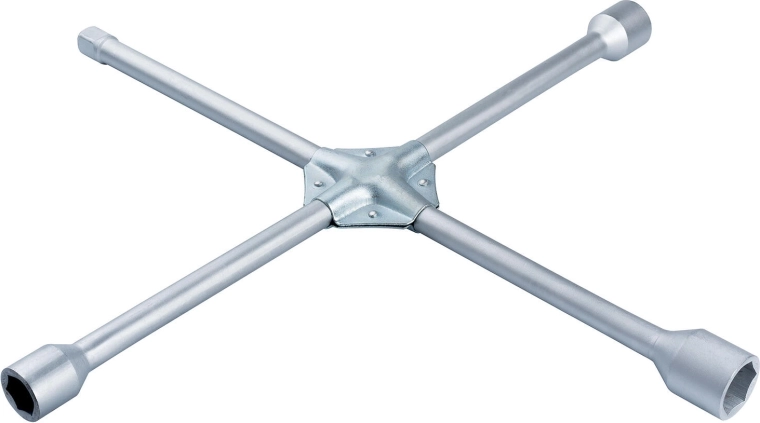 Clé en croix pour roues robuste avec quatre tailles d’embouts 17/19/21/23 mm pour un changement de roue et un entretien rapides. Fabriquée en acier de haute qualité avec une surface antidérapante pour une prise en main sûre et confortable. Permet un serrage efficace des vis avec une force suffisante et couvre les tailles d’écrous de roue les plus courantes.