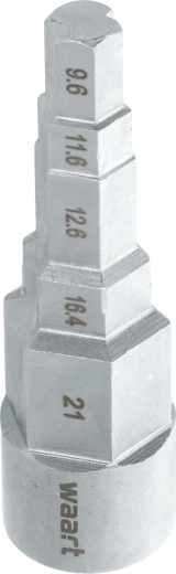 • Dimensions précises – 3/8", 29/68", 1/2", 21/32", 27/32" (9,6 / 11,6 / 12,6 / 16,4 / 21 mm)