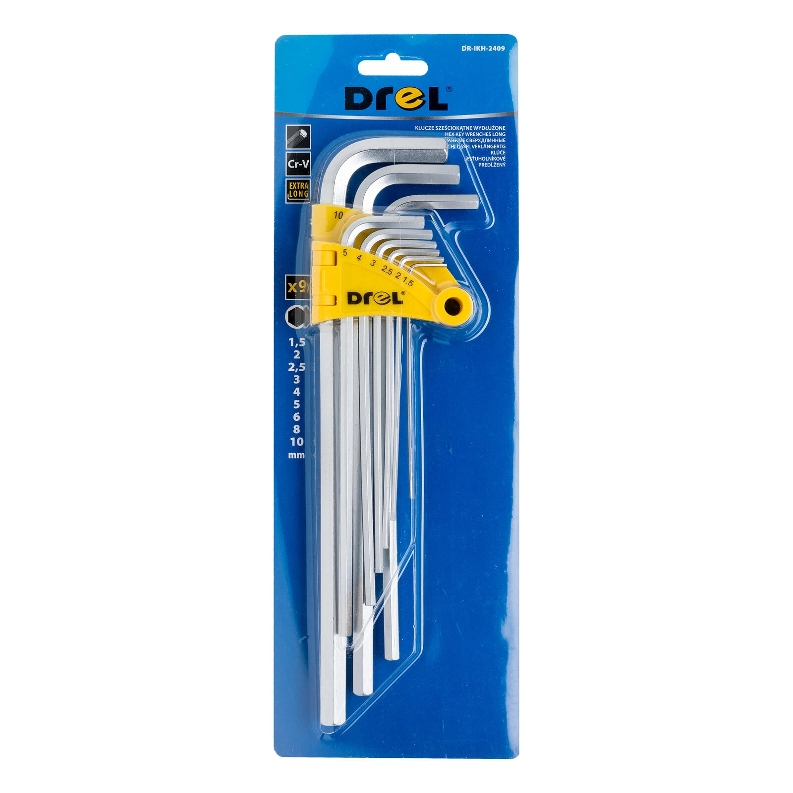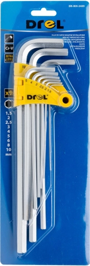 Jeu de clés Allen 1,5–10 mm, 9 pièces, longues DREL