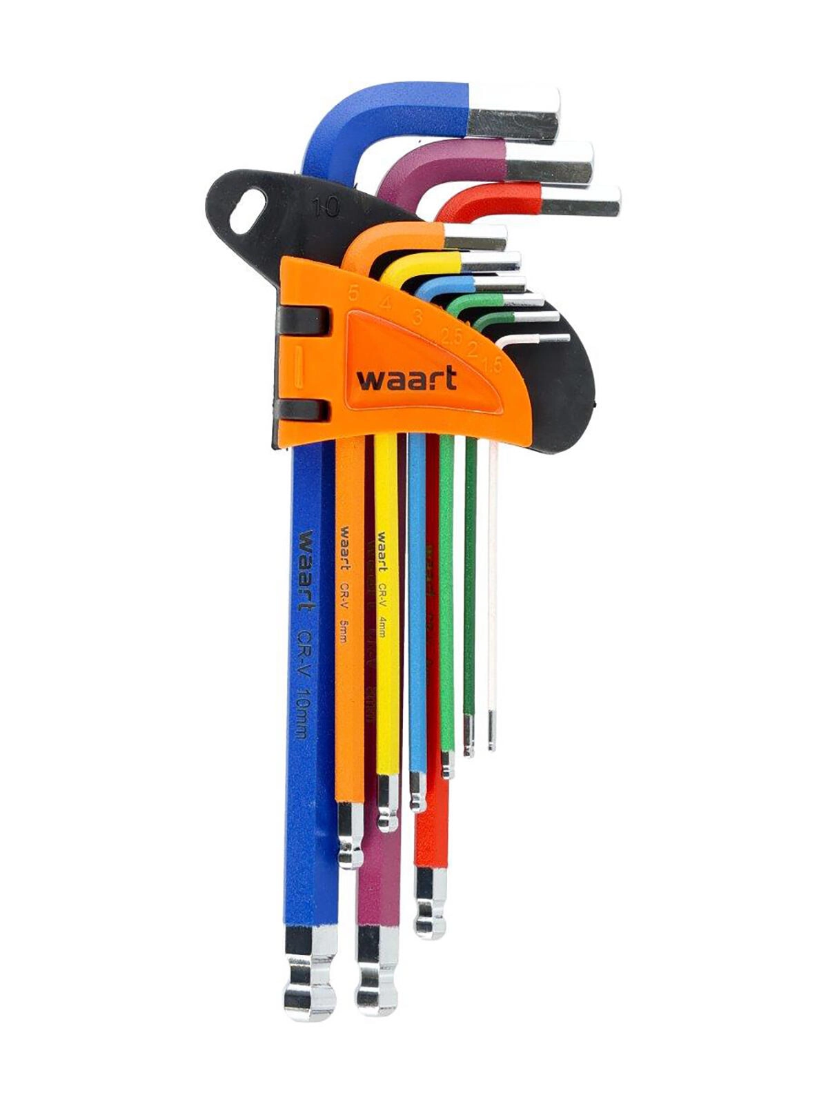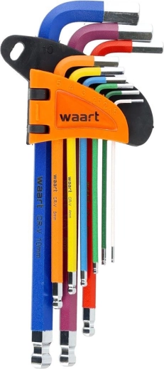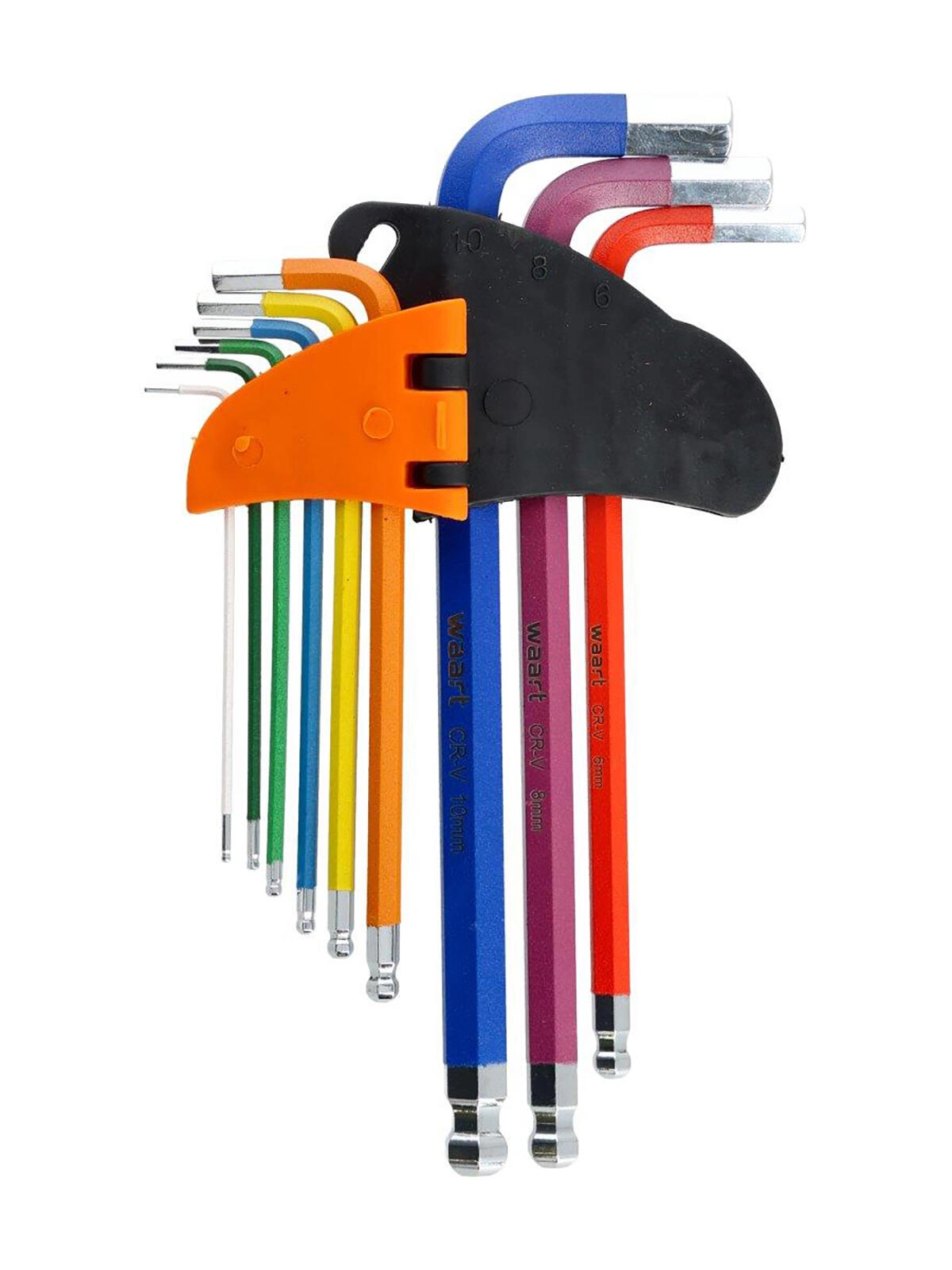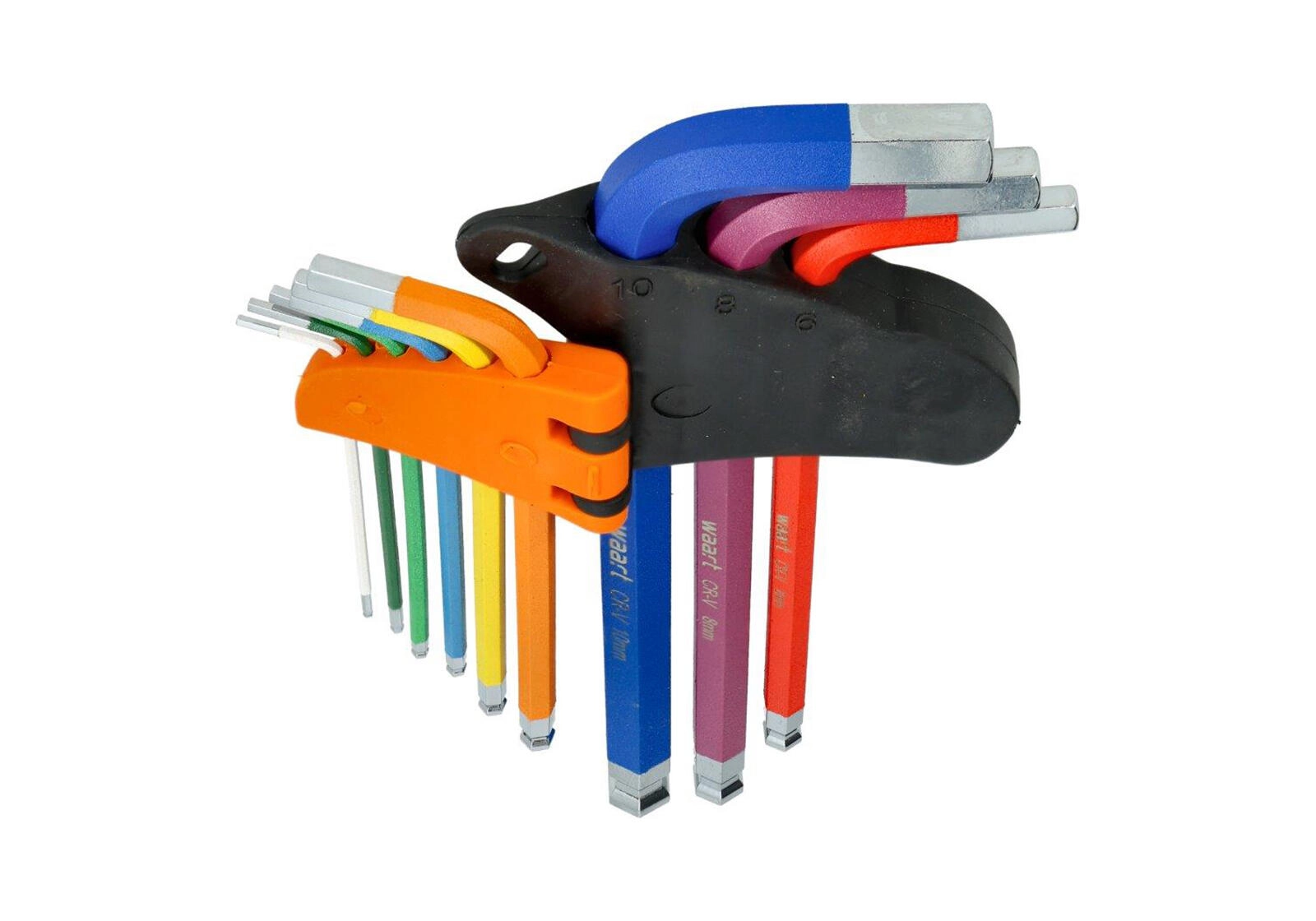 Chaque clé est codée par couleur pour une identification immédiate de la bonne dimension. Le profil à embout boule permet de travailler sous un angle jusqu’à 25°, ce qui facilite le serrage ou le desserrage des vis là où les clés classiques ne suffisent pas. Le long bras offre un meilleur effet de levier pour un couple plus élevé et un accès confortable aux vis profondément encastrées.