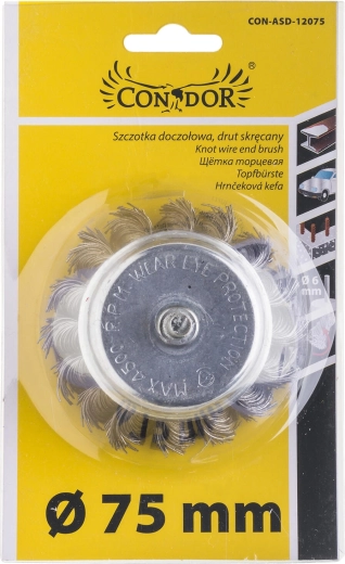 Brosse coupelle en acier avec queue 75 mm, fil ondulé 0,5 mm