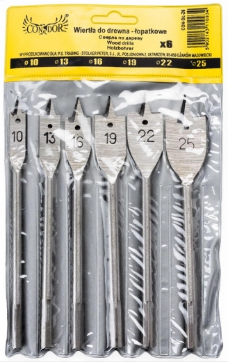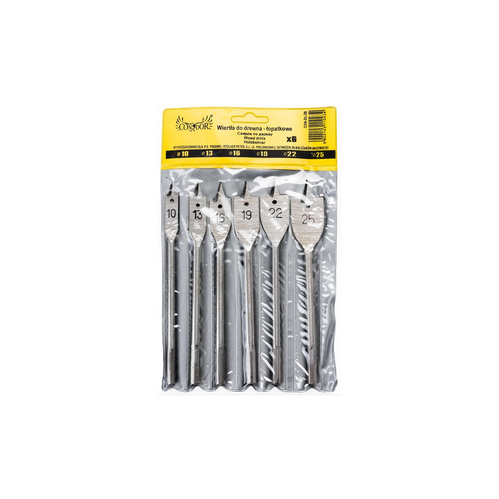 Set de mèches plates pour bois DREL 10–25 mm, 6 pièces