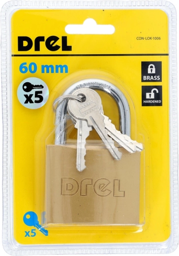 Solide cadenas en laiton de 60 mm de large offrant une protection fiable pour portails, abris, casiers et espaces de stockage. Corps en laiton résistant et 5 clés fournies pour une utilisation pratique, même par plusieurs utilisateurs.