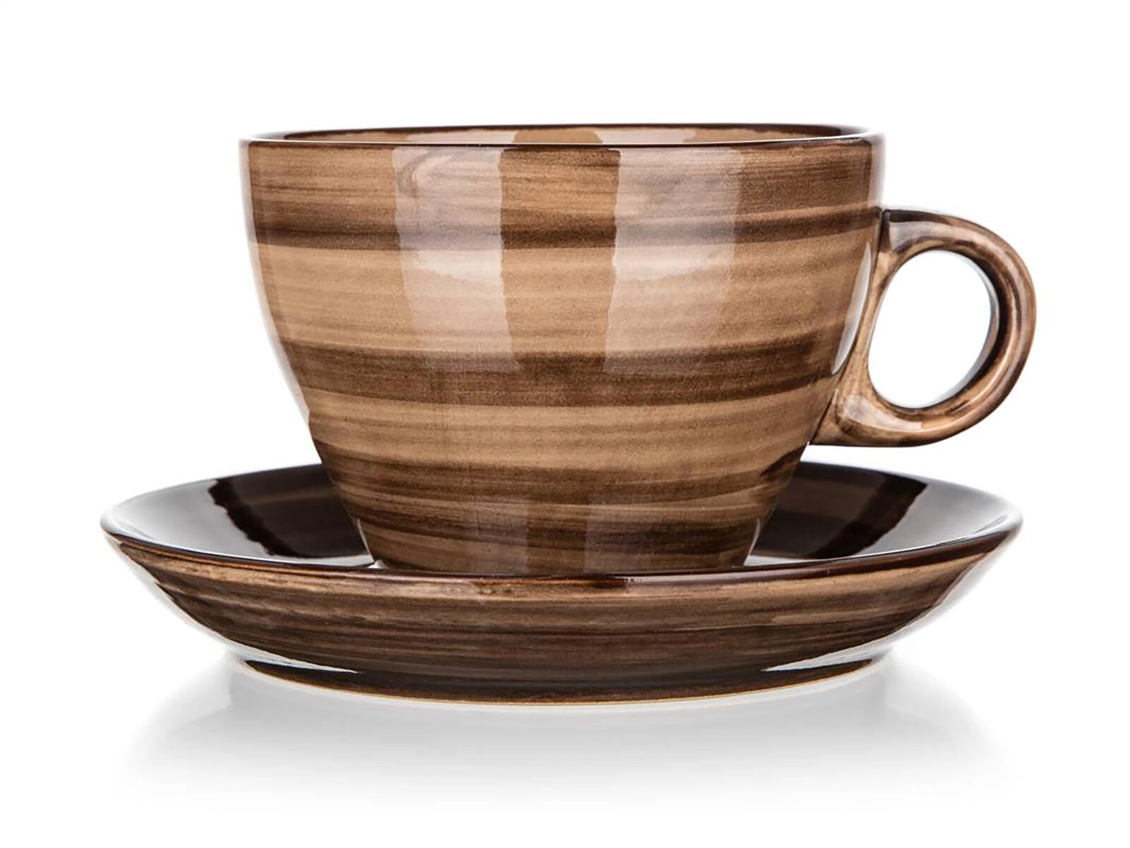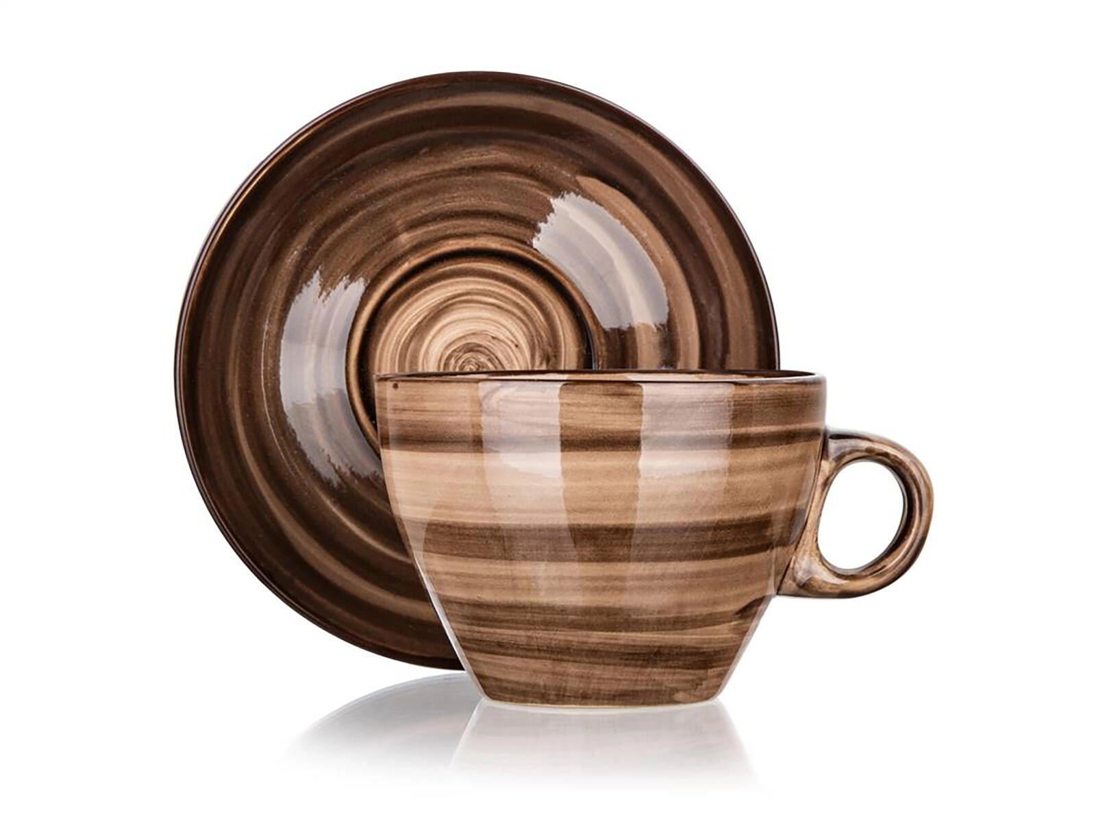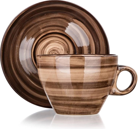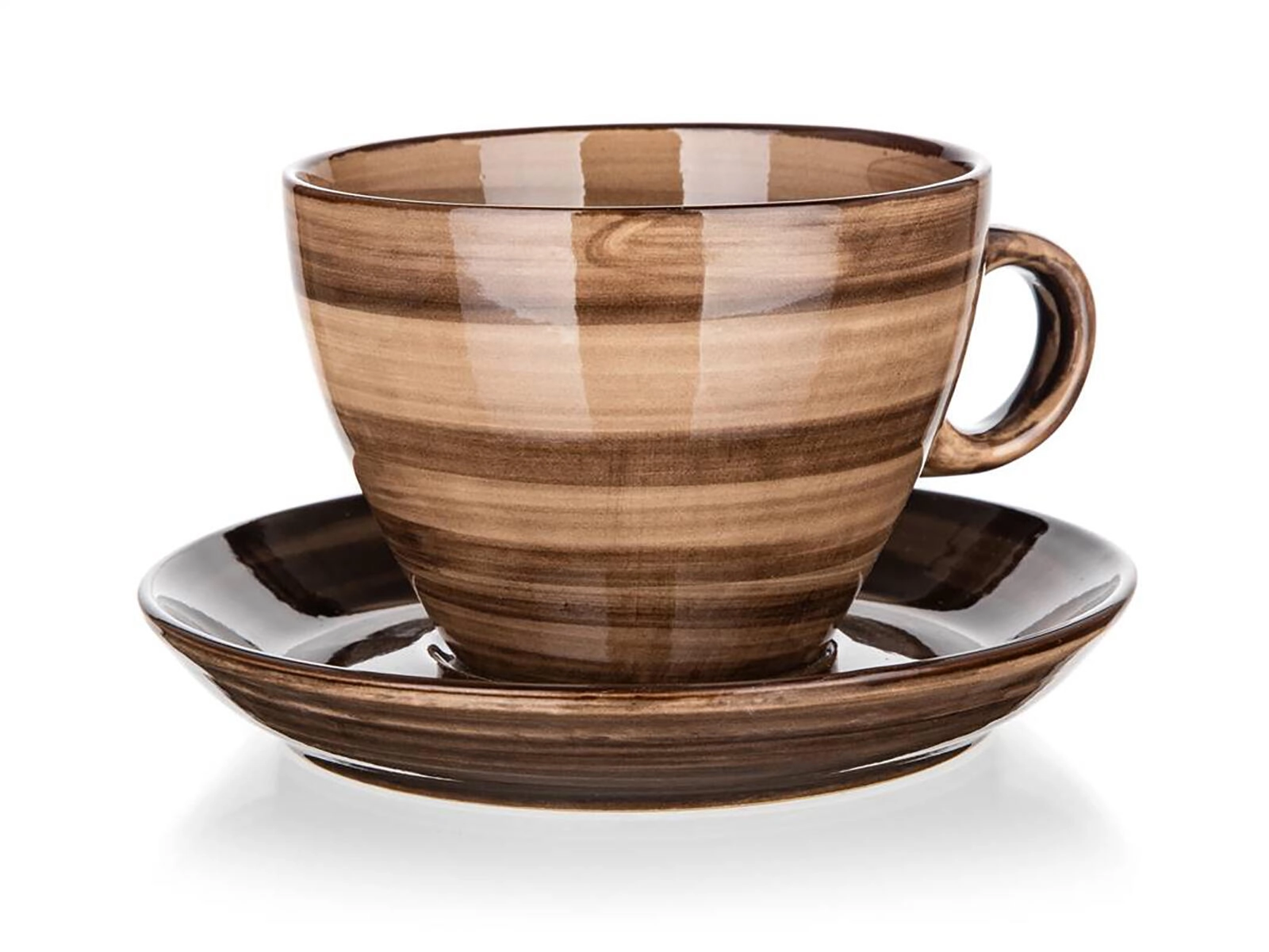 La glaçure brillante, aux nuances de marron et aux rayures discrètes, confère à la tasse et à la soucoupe une allure intemporelle et se marie aisément avec le reste de votre vaisselle.