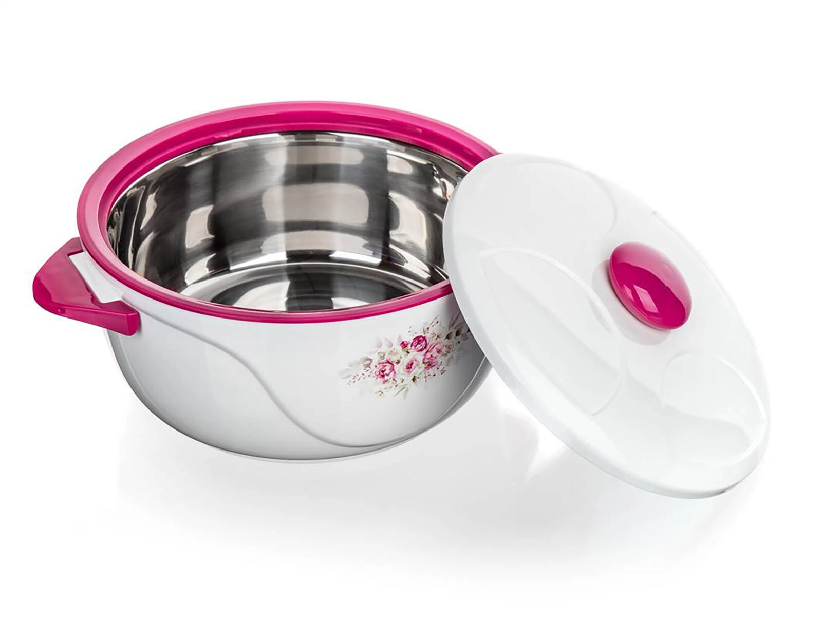 Le bol isotherme ROSE 3,5 l est un allié pratique pour toute cuisine. L’association d’un insert intérieur en inox et d’une isolation PUR maintient efficacement la température de vos plats, tant pour le stockage que pour le transport. Son design élégant à motif fleuri et détails roses sublime la table au moment du service.