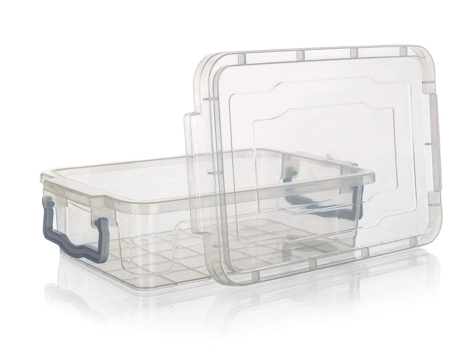 La boîte Gema de forme rectangulaire assure un stockage fiable et hygiénique des ingrédients, des plats préparés et des en-cas. Grâce au plastique transparent, vous voyez toujours ce qu’il y a à l’intérieur, et les poignées turquoises pratiques facilitent la manipulation et le transport.