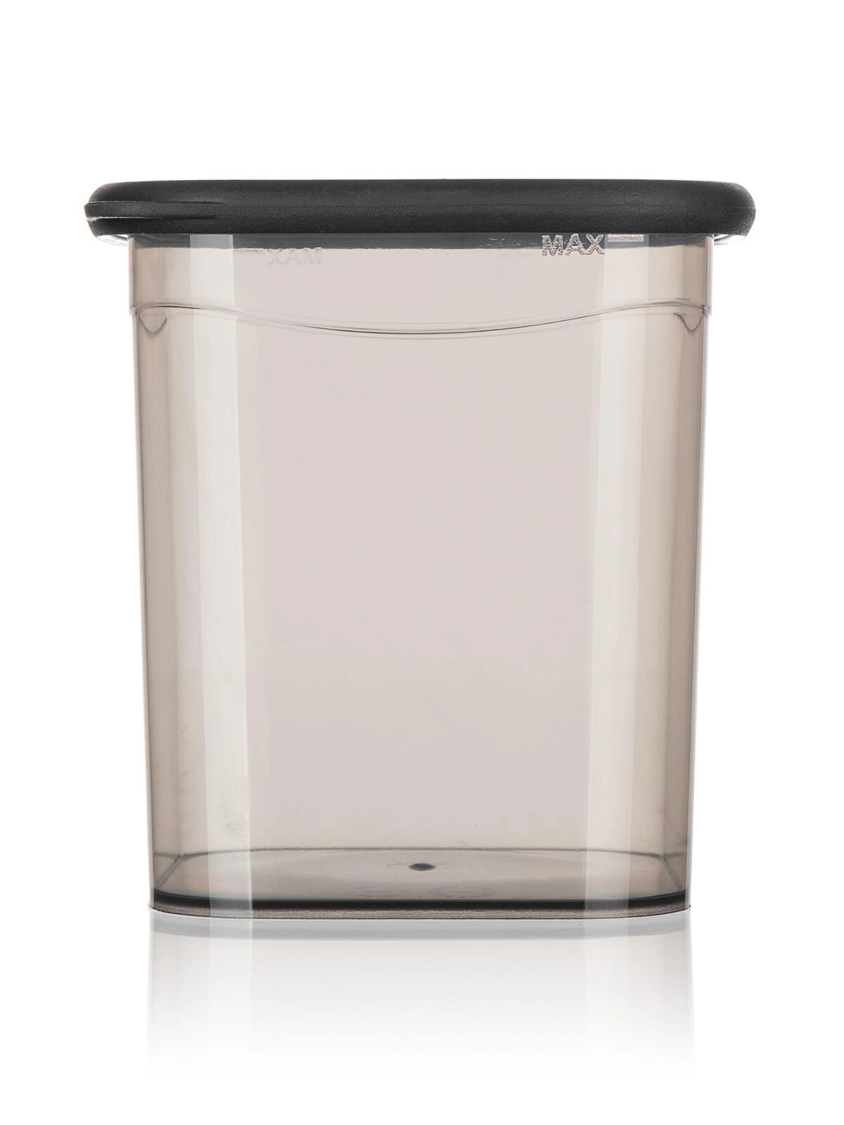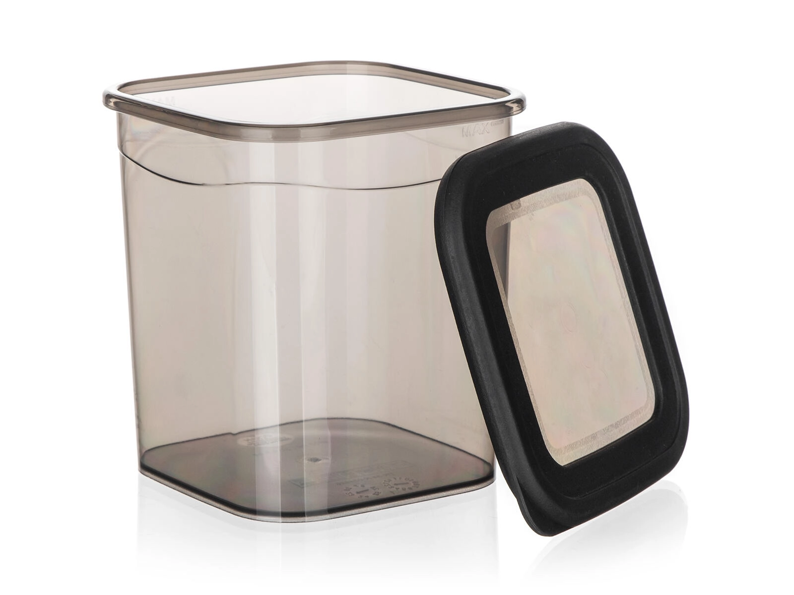 La teinte fumée translucide permet de vérifier le contenu d’un coup d’œil sans ouvrir le couvercle.