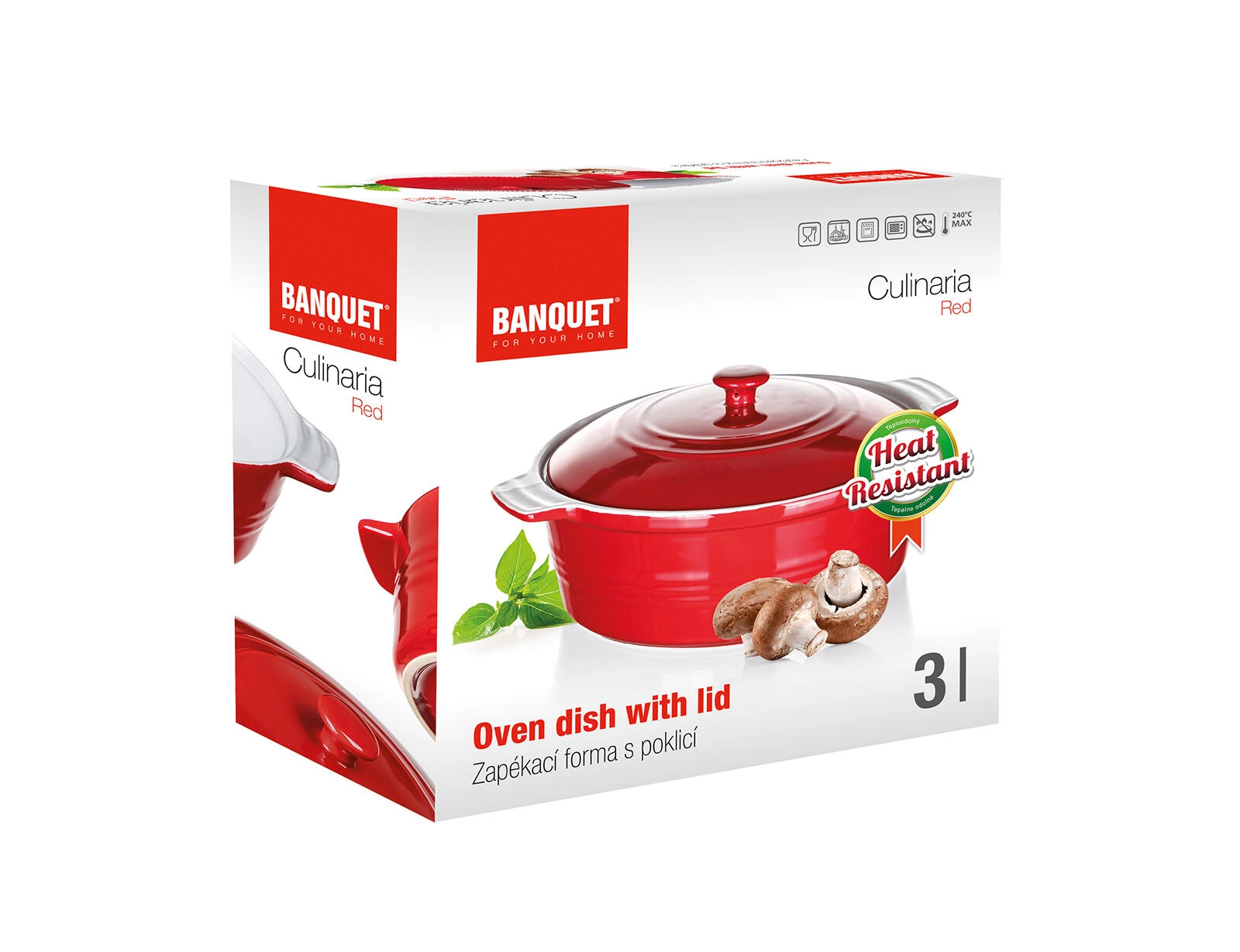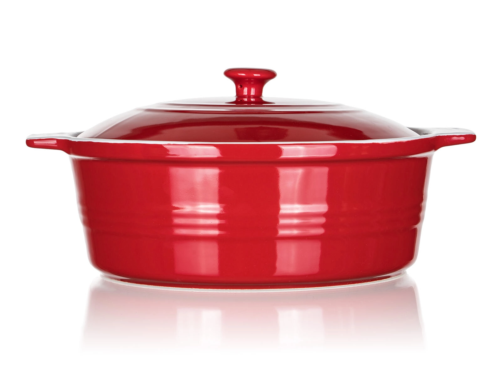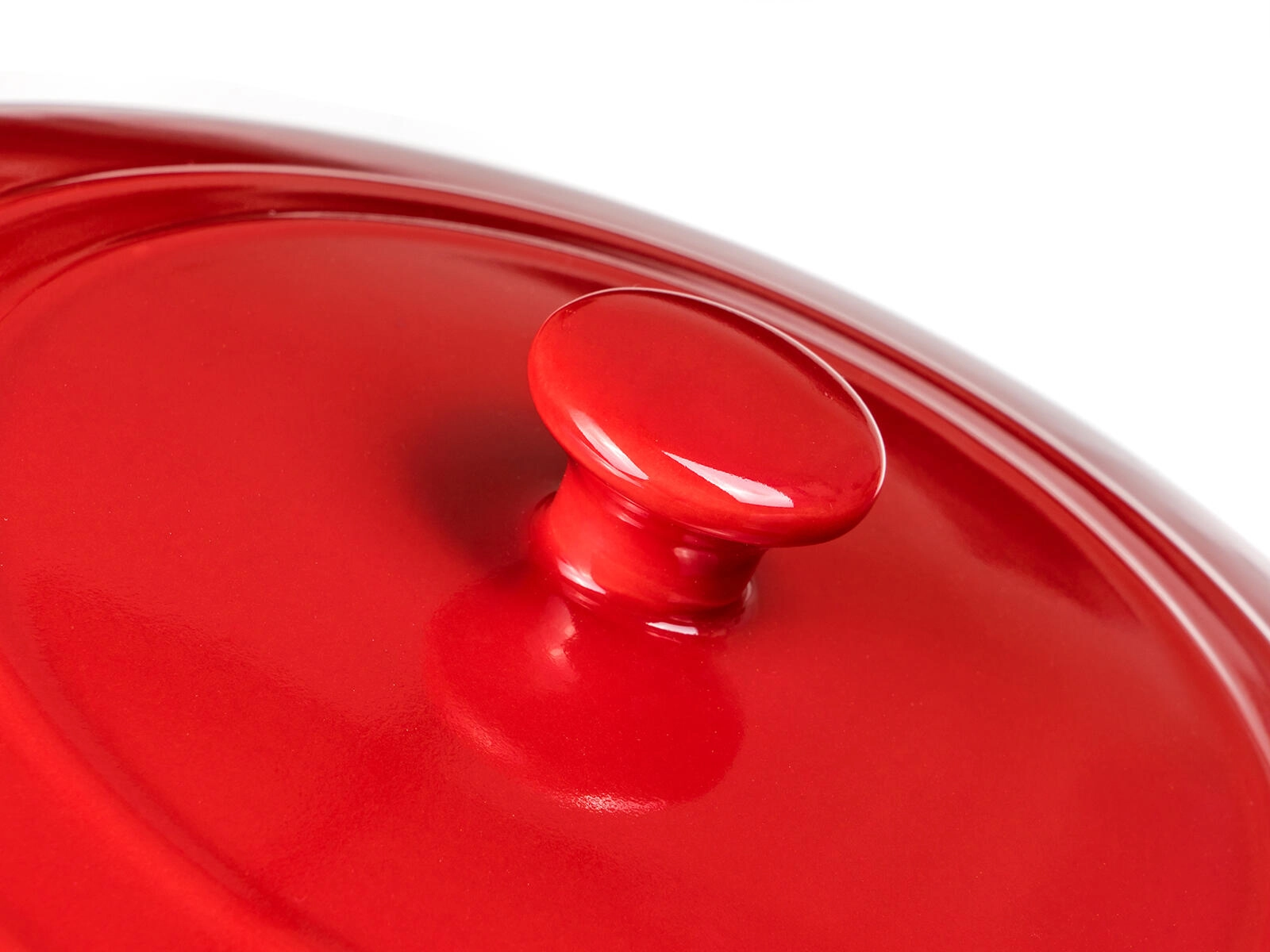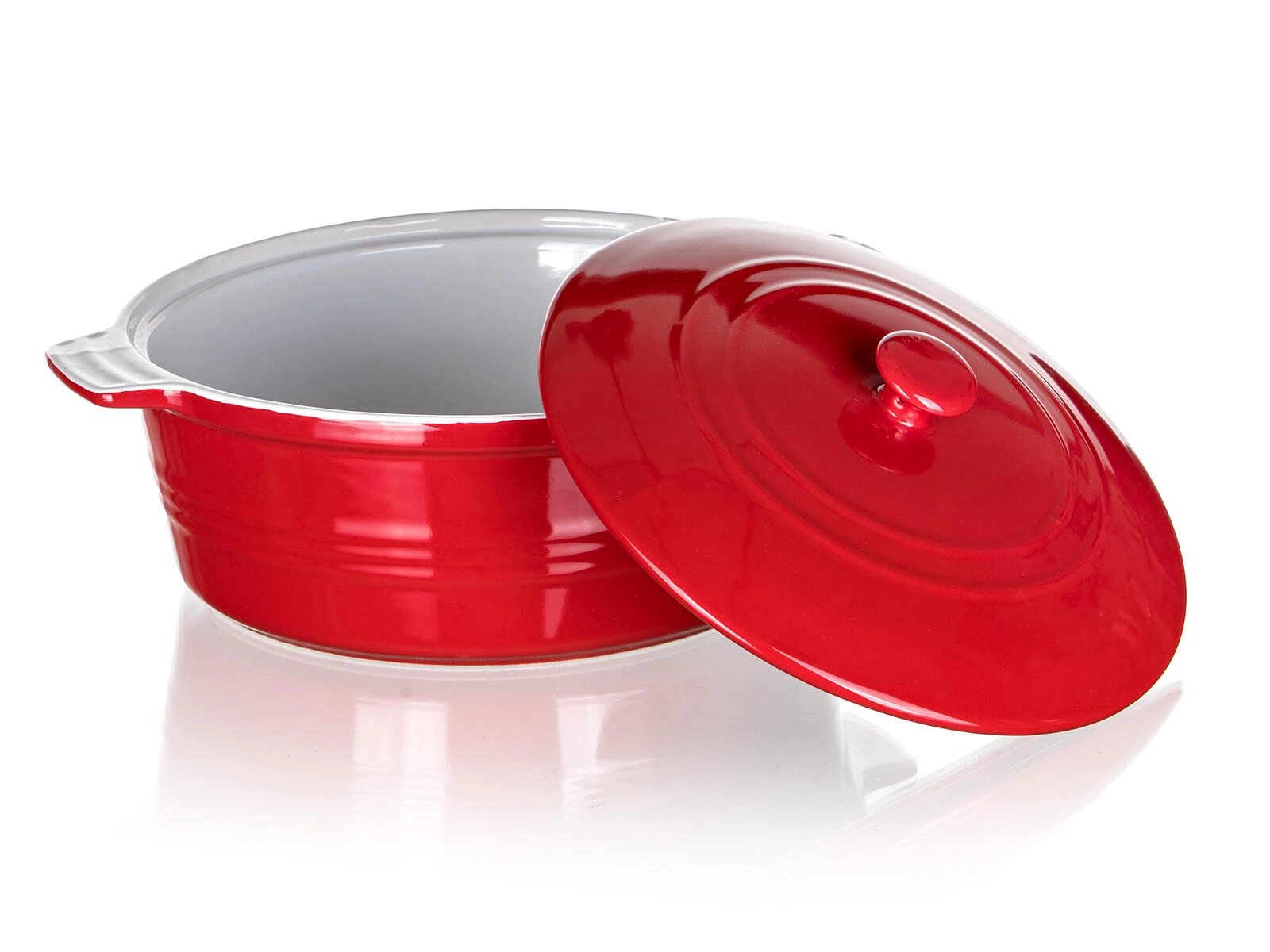 Plat à four en céramique avec couvercle CULINARIA, rond, rouge/blanc, 31,5 × 26,5 × 14,5 cm