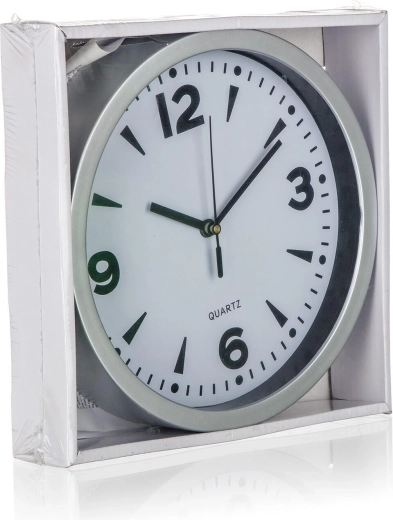 Horloge murale élégante de 20 cm de diamètre en plastique résistant, idéale pour le salon, le bureau et la cuisine. Elle offre un cadran clair et lisible, un mécanisme fiable et un entretien facile pour un usage quotidien.