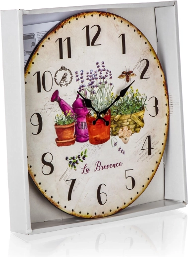 Rafraîchissez les murs de votre maison avec une horloge murale au décor intégral de lavande. Son cadran clair et son look élégant s’accordent facilement aux intérieurs modernes comme rustiques. Grâce à son diamètre de 34 cm, l’heure reste bien lisible même à plus grande distance.