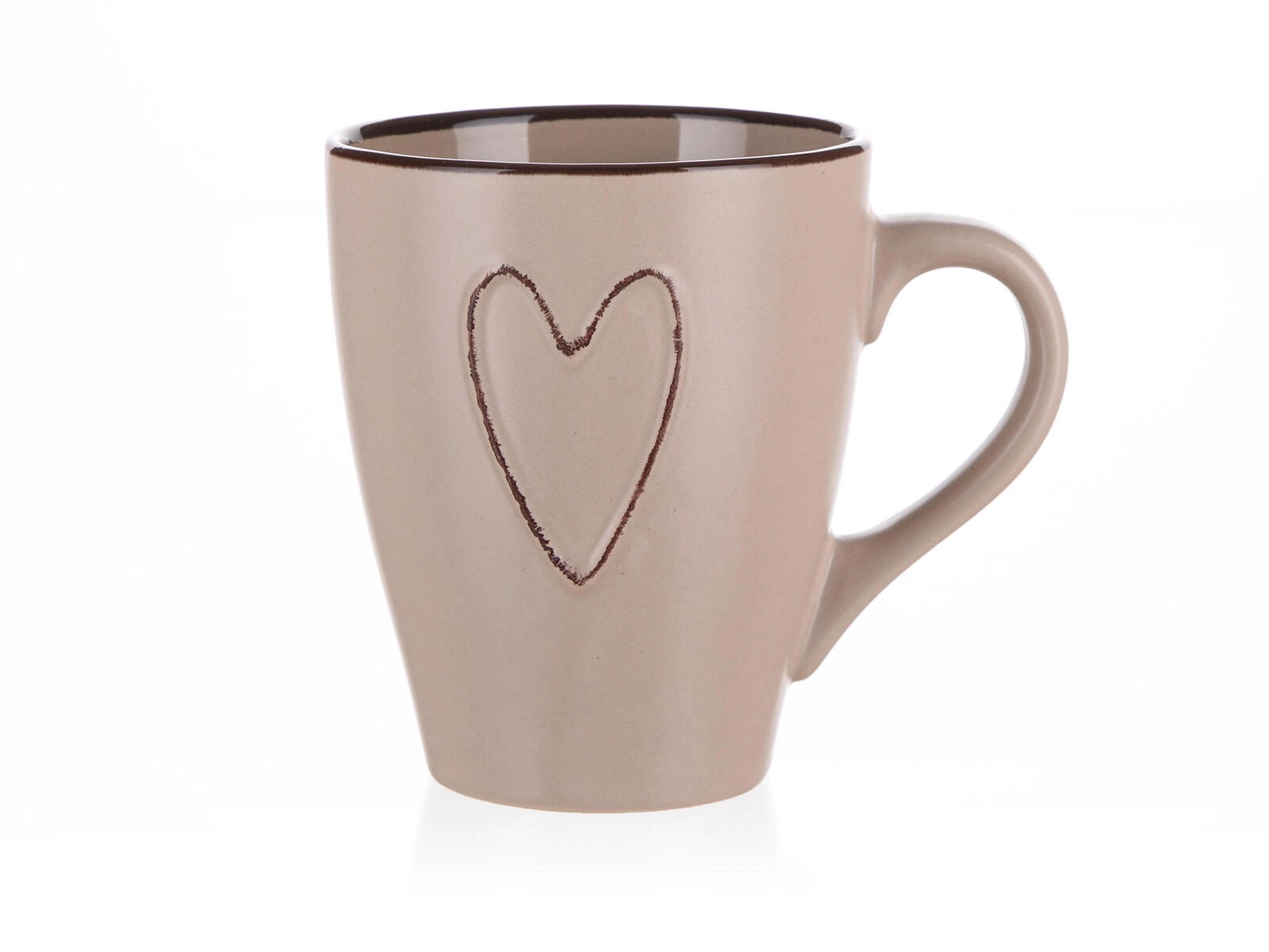 Profitez de votre café ou thé préféré dans ce mug pratique et intemporel au motif HEART. Grâce à son volume universel de 310 ml, il tient parfaitement en main et sa couleur beige s’harmonise facilement avec toutes les tables.