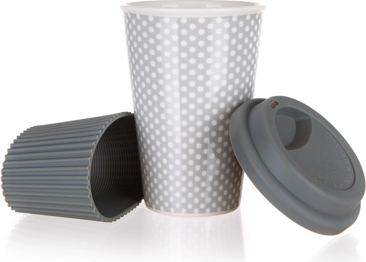Conçue pour un usage quotidien, elle se nettoie facilement, passe au lave-vaisselle et permet de réchauffer au micro-ondes. Son design gris minimaliste à pois convient au bureau, en voiture comme à la maison, et souligne votre style personnel.