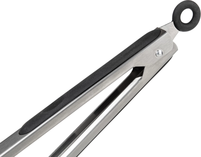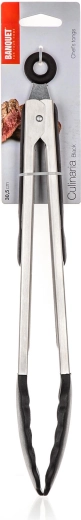 La bague située en partie supérieure sert de verrou/lock pour fermer les pinces et aussi d’anneau de suspension. Grâce aux poignées ergonomiques, les pinces restent confortables même lors de cuissons prolongées.