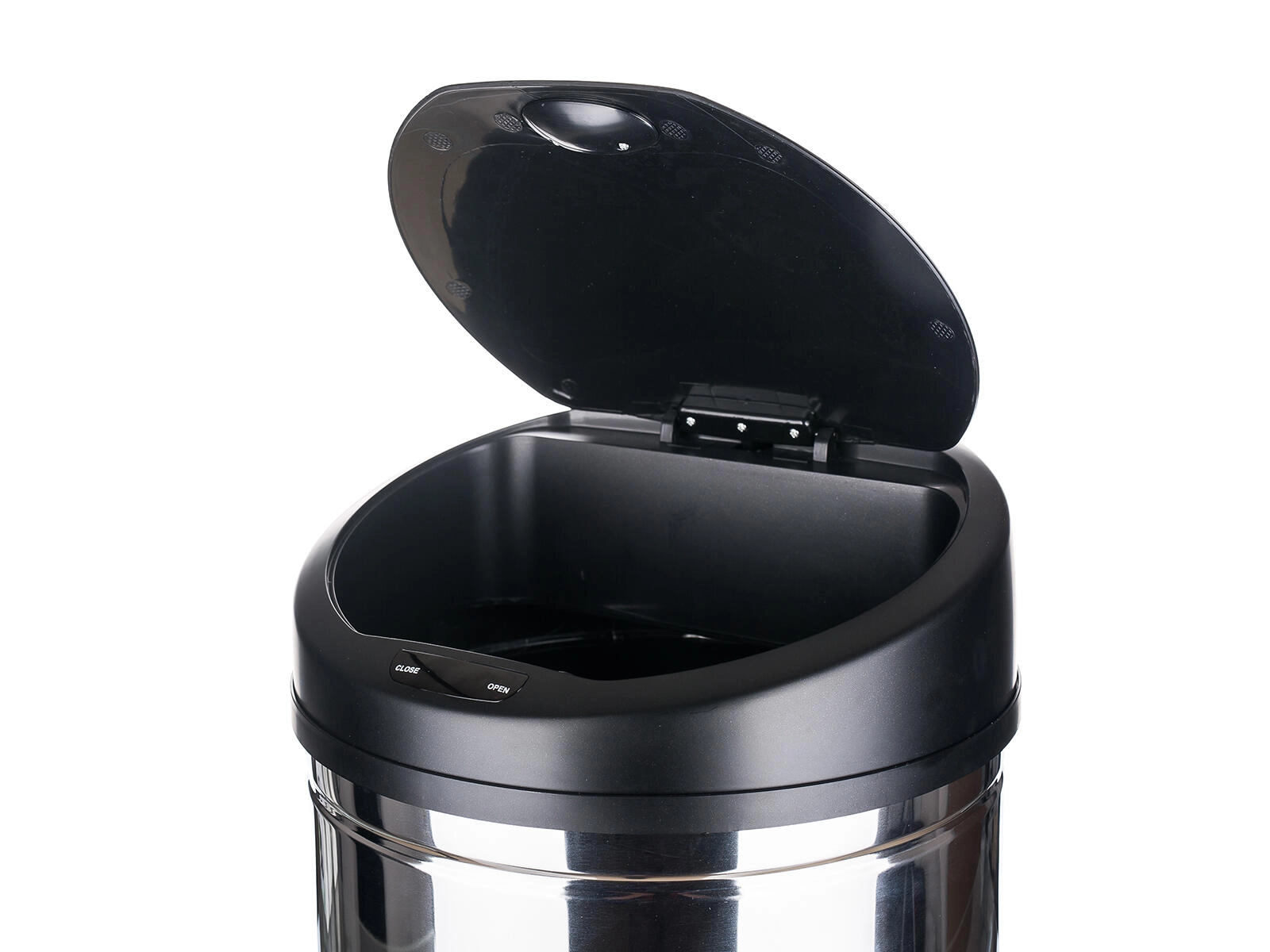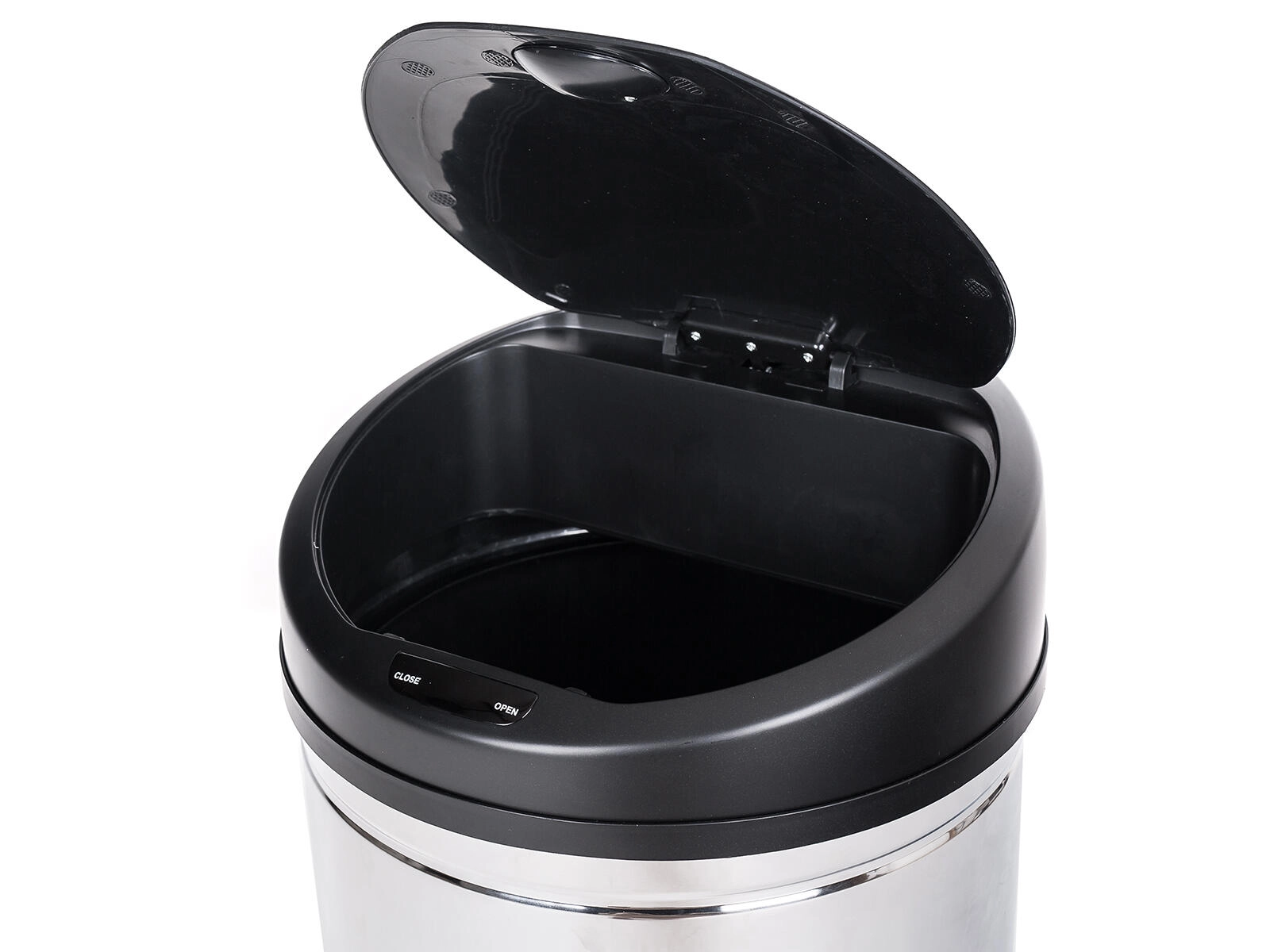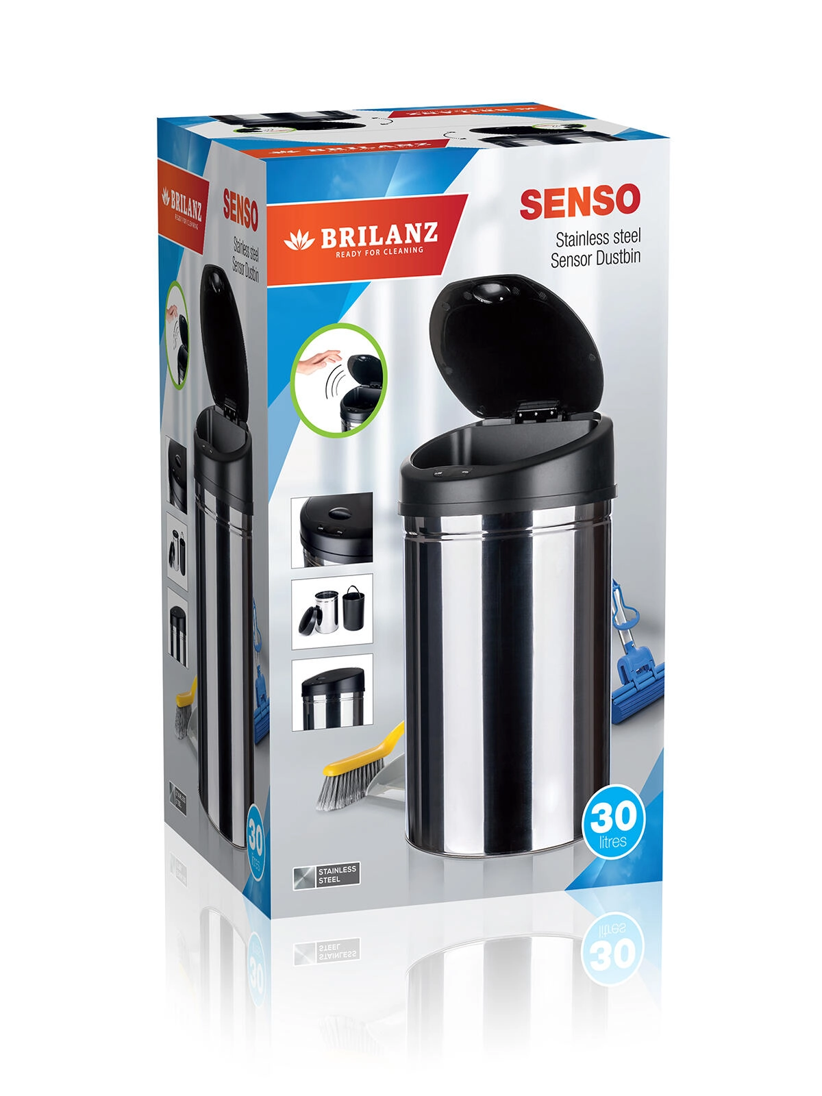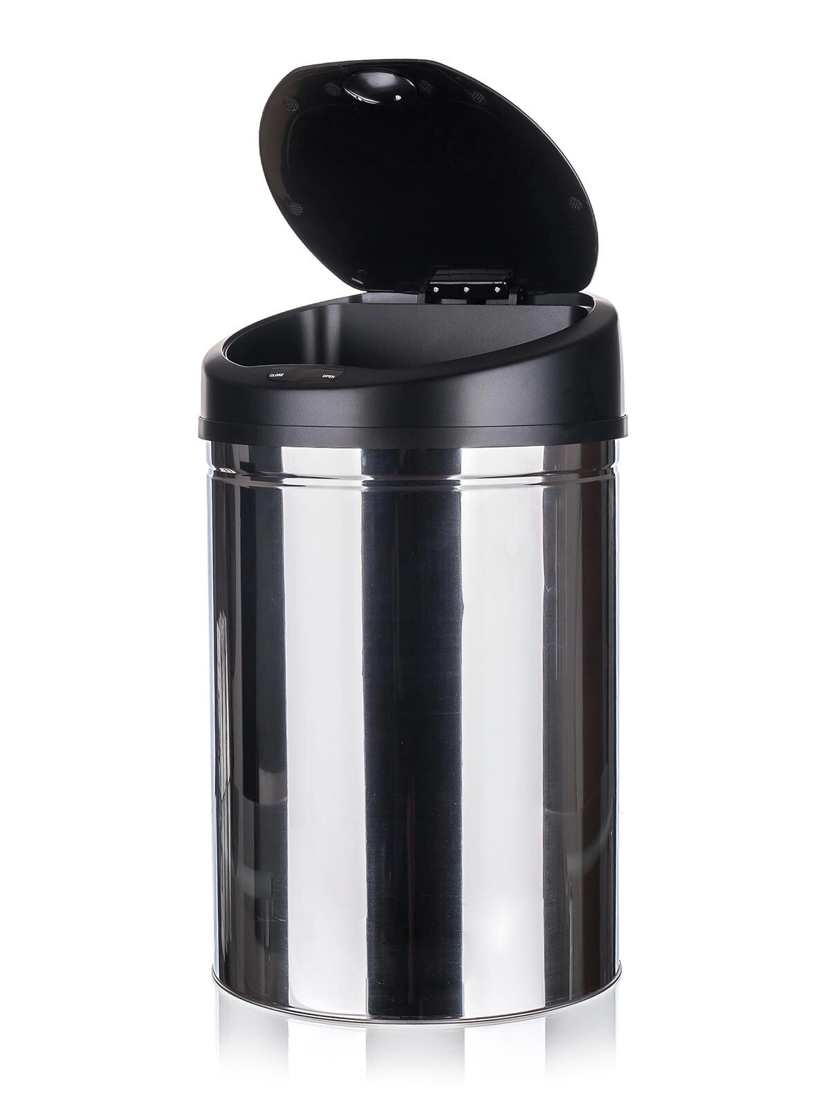 Poubelle sans contact SENZO de 30 l en inox élégant pour un ménage et un bureau plus propres et plus pratiques. Grâce au capteur intégré, le couvercle s’ouvre et se ferme automatiquement, garantissant une hygiène maximale sans contact. Le corps robuste en acier inoxydable au fini brillant et le seau intérieur en plastique amovible facilitent l’entretien. L’alimentation est assurée par 4× piles AA à faible consommation d’énergie.