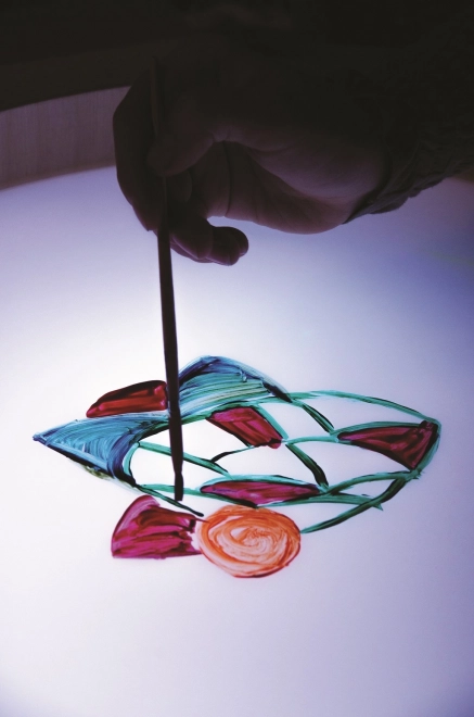 Le plexiglas résistant permet diverses techniques de dessin et de création – de la peinture au doigt au travail avec des accessoires et des formes.